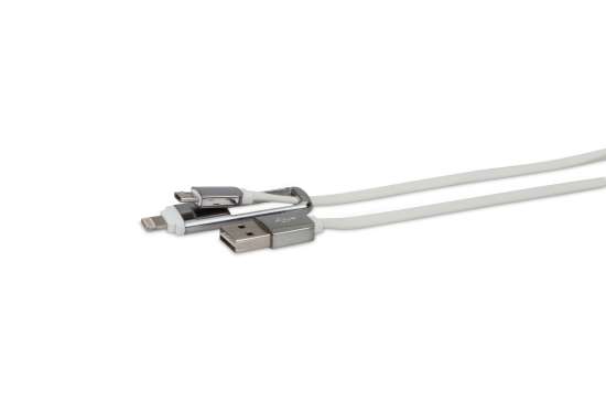 Plochý USB 2.0 kabel, se kterým propojíte své mobilní zařízení - smartphone, tablet, fotoaparát, s notebookem či počítačem. Dvojitá koncovka vám umožní bezproblémové dobíjení a přenos dat jak pro Apple, tak i pro zařízení s microUSB vstupem. Venkovní izolaci kabelu tvoří TPE, tedy termoplastický elastomer s velkou mechanickou odolností. Díky své plochosti se kabel nezamotává, můžete tedy zapomenout na nepříjemnou situaci před použitím. S funkcí DOUBLE-U se nemusíte starat v jakém směru je koncovka USB momentálně otočena. Tato vlastnost vám také snižujete riziko poškození koncovky špatným zasunutím do zařízení.