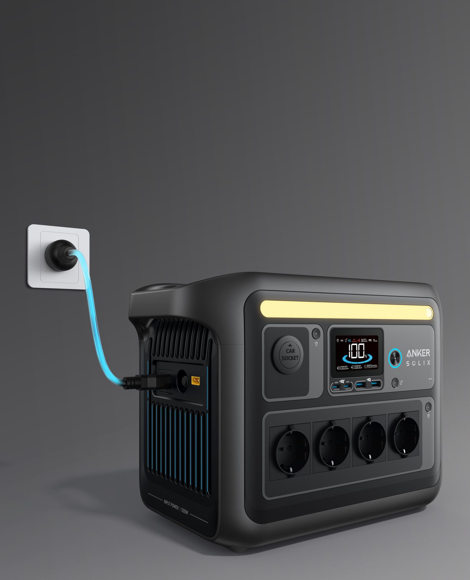 SOLIX C1000X je vybaven 1056Wh LifePO4, která zvládne více než 3 000 nabíjecích cyklů. Díky nepřetržitému výkonu 1800W a až 600W solárnímu vstupu přes solární panely nabízí toto přenosné napájecí řešení působivý výkon pro různé aplikace.