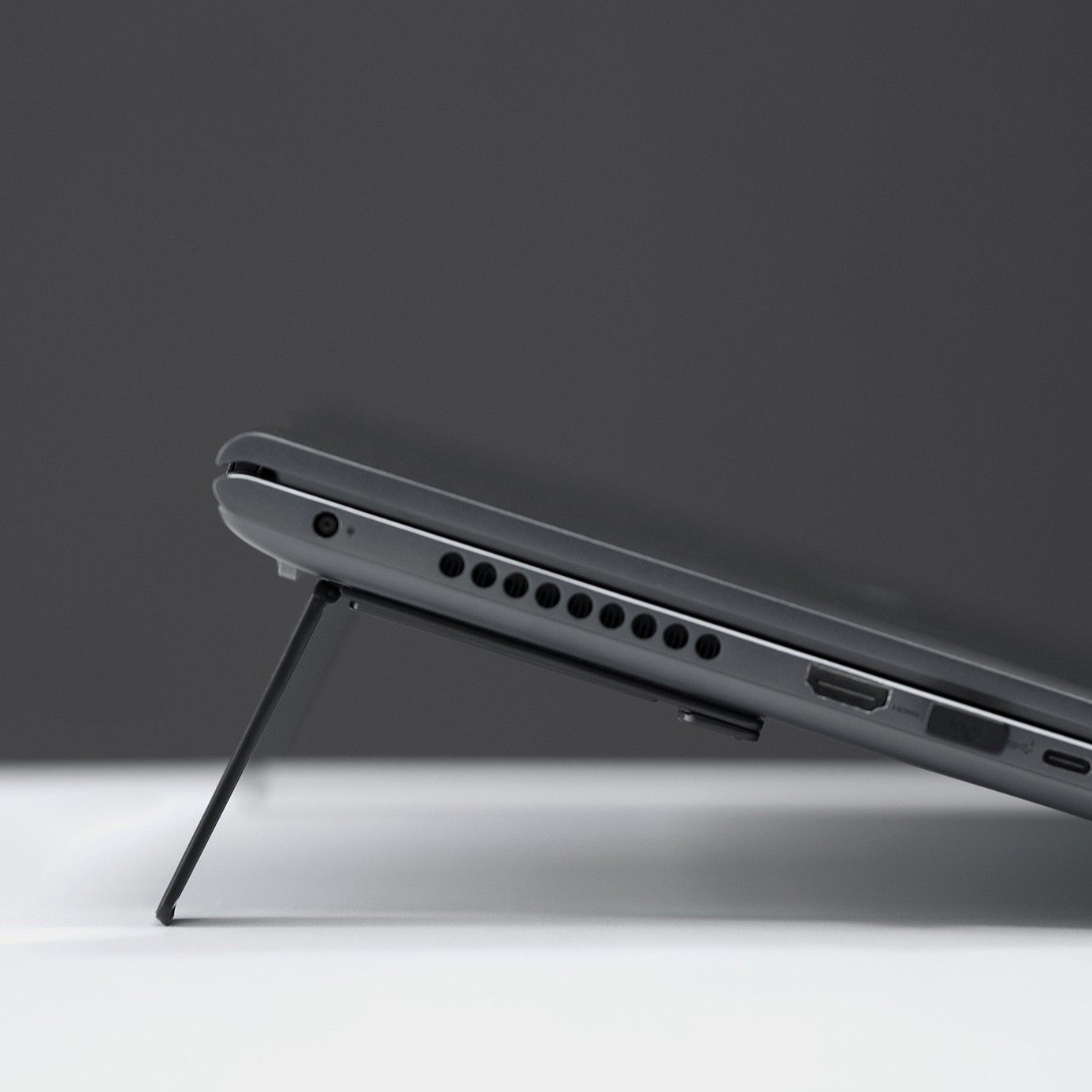 – Díky 18° náklonu a nadzvednutí notebooku o 5 cm (2") dochází k výraznému zlepšení proudění vzduchu. Stojan neblokuje větrací otvory, pomáhá snižovat přehřívání a hlučnost ventilátorů.