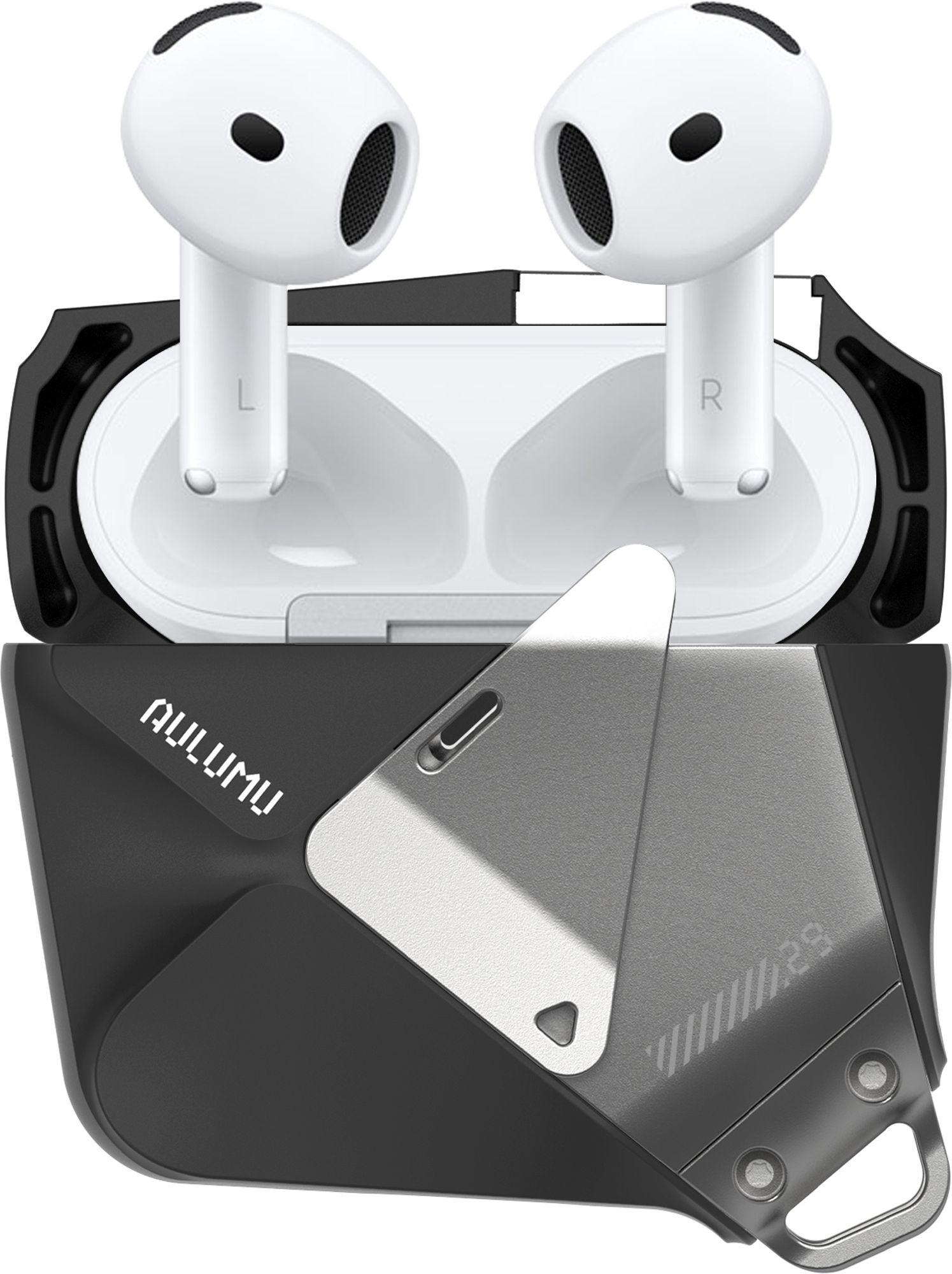 Aulumu A29 Geometric Lock & Lanyard pouzdro na AirPods 4, Black