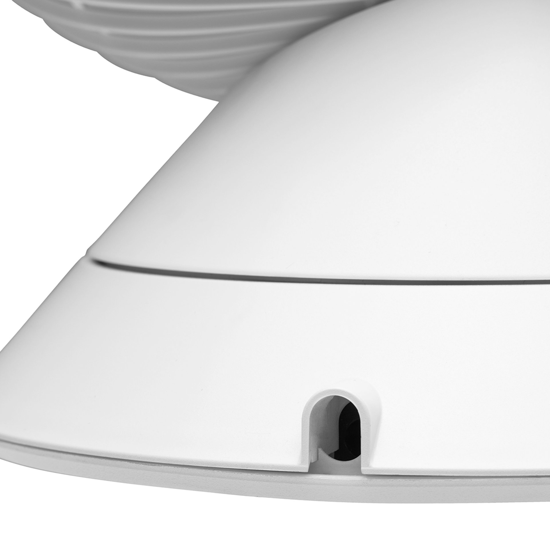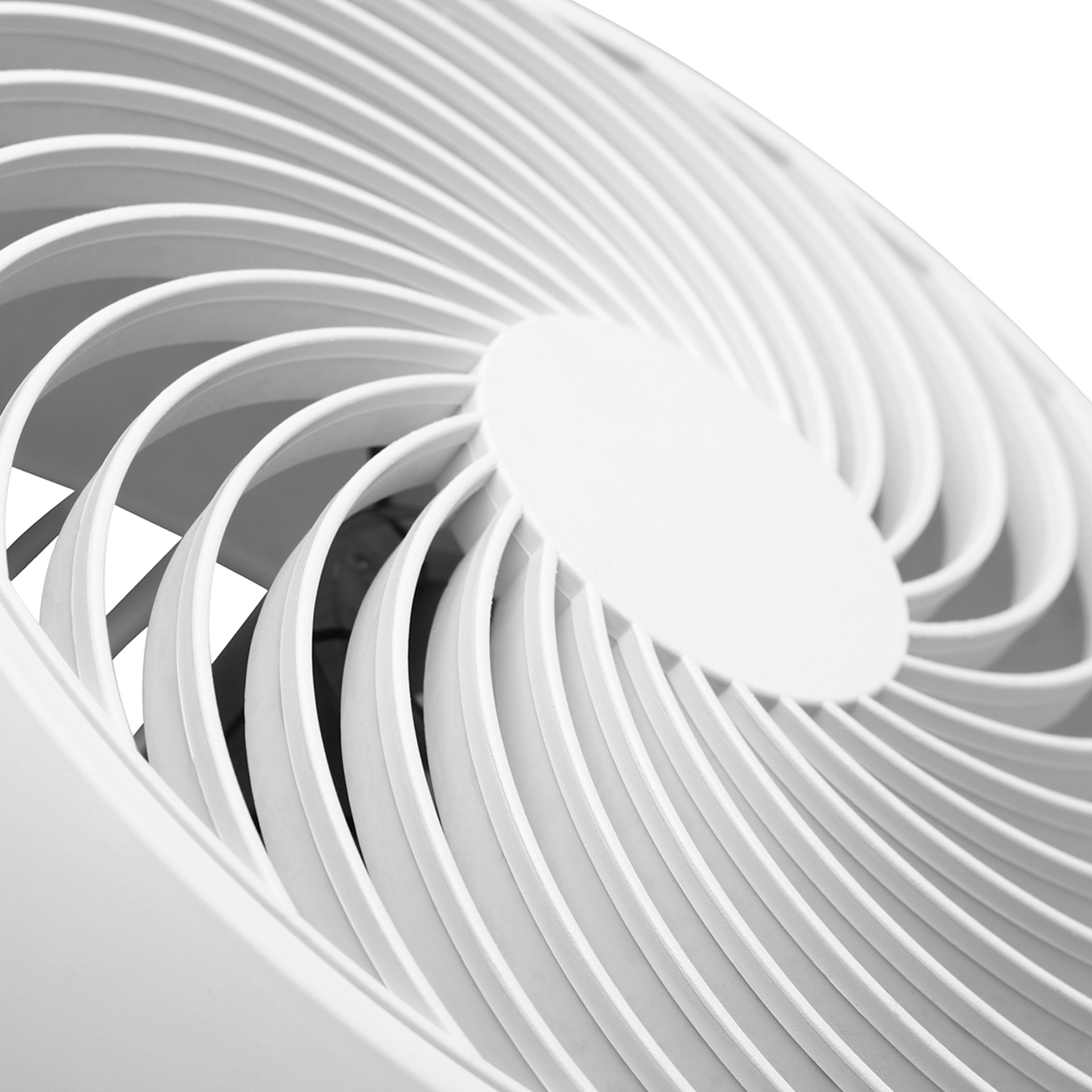 Designový stolní ventilátor v bílém provedení.