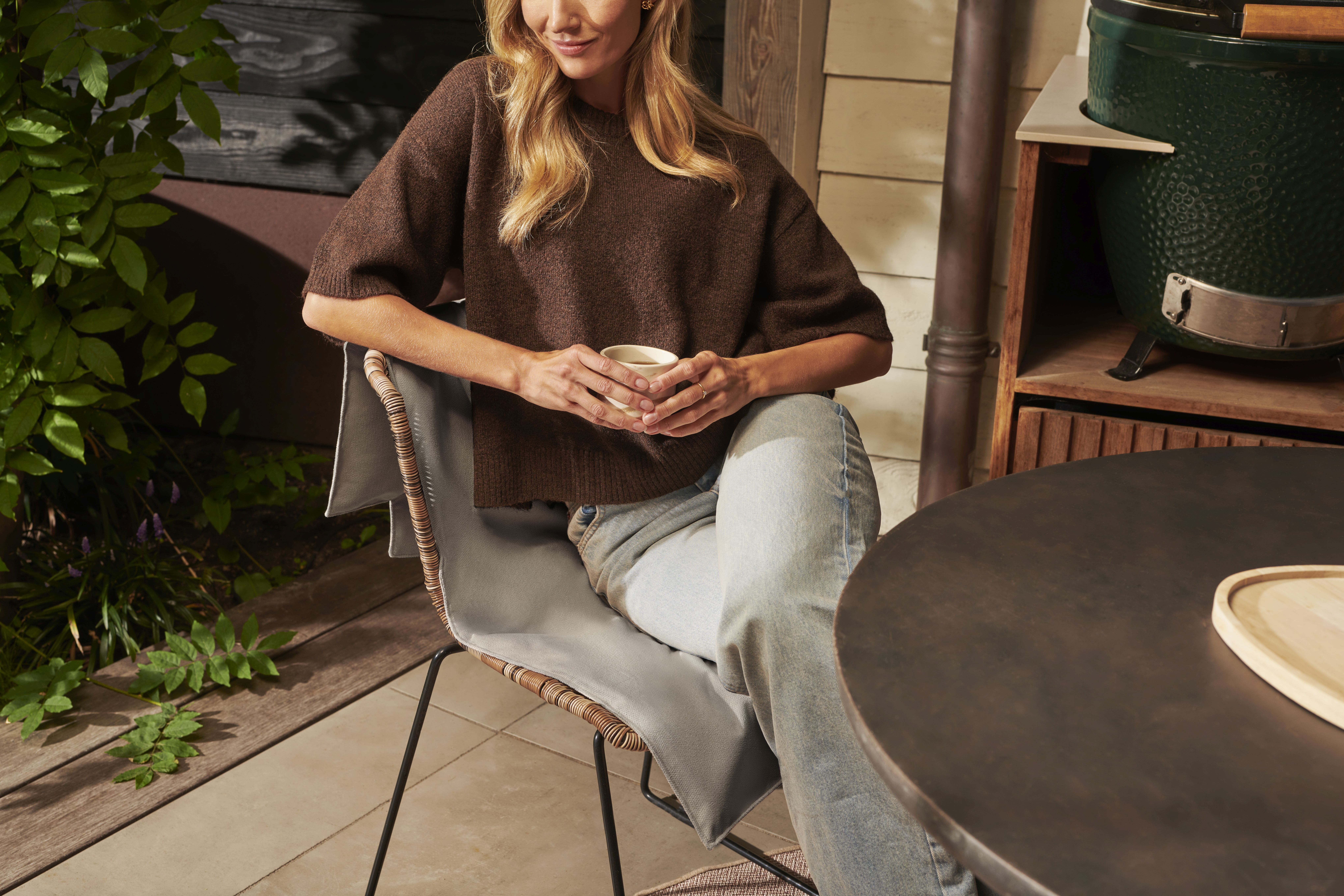 Pohodlí i venku. Mellow je díky vodoodpudivému potahu a bezdrátovému provozu ideální také pro venkovní použití. Ať už jste na chladném ránu v kempu nebo si užíváte večer na terase, zůstanete v teple bez ohledu na počasí.
