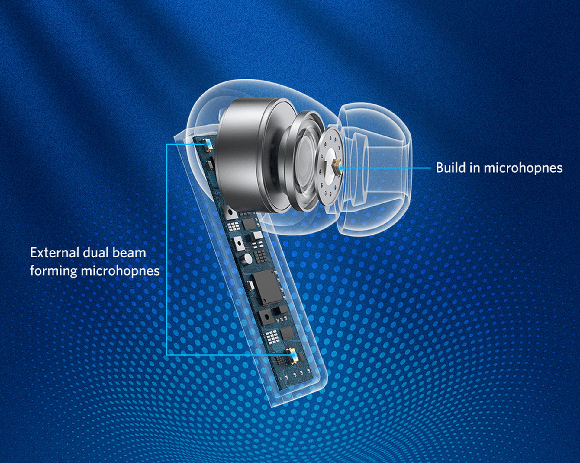 EarFun technologie QuietSmart ™ 2.0 je upgradovaný aktivní ANC systém, který maximalizuje potlačení hluku až o 40dB, navíc se pyšní potlačením zvuku větru.