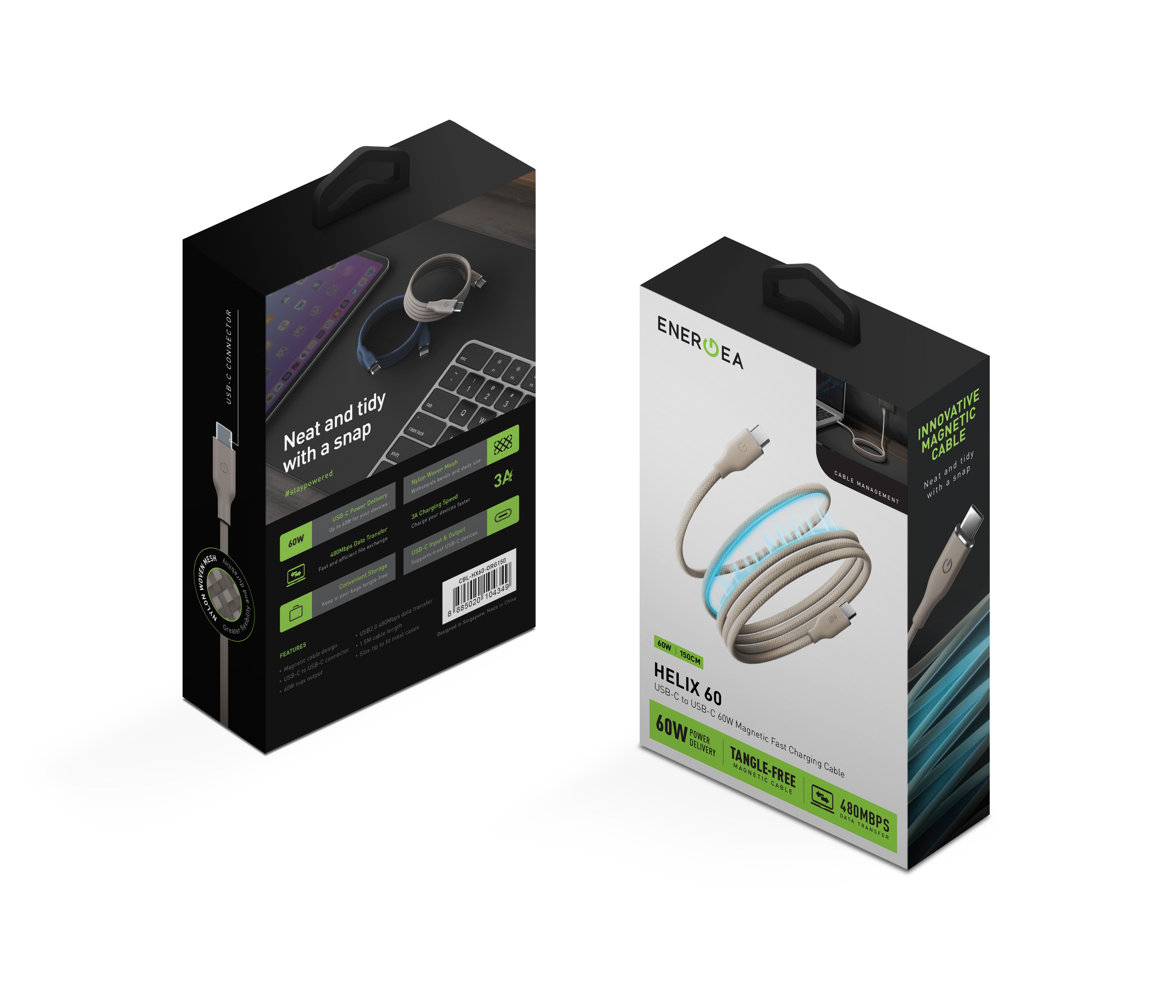 Představujeme vám HELIX 60 – moderní magnetický nabíjecí a datový kabel USB-C na USB-C s podporou Power Delivery až 60 W. Je navržen pro každodenní používání bez kompromisů: rychlé nabíjení, spolehlivý přenos dat a chytrý magnetický design, který zabrání zamotání kabelu a udrží vaši tašku i pracovní stůl dokonale přehledné.