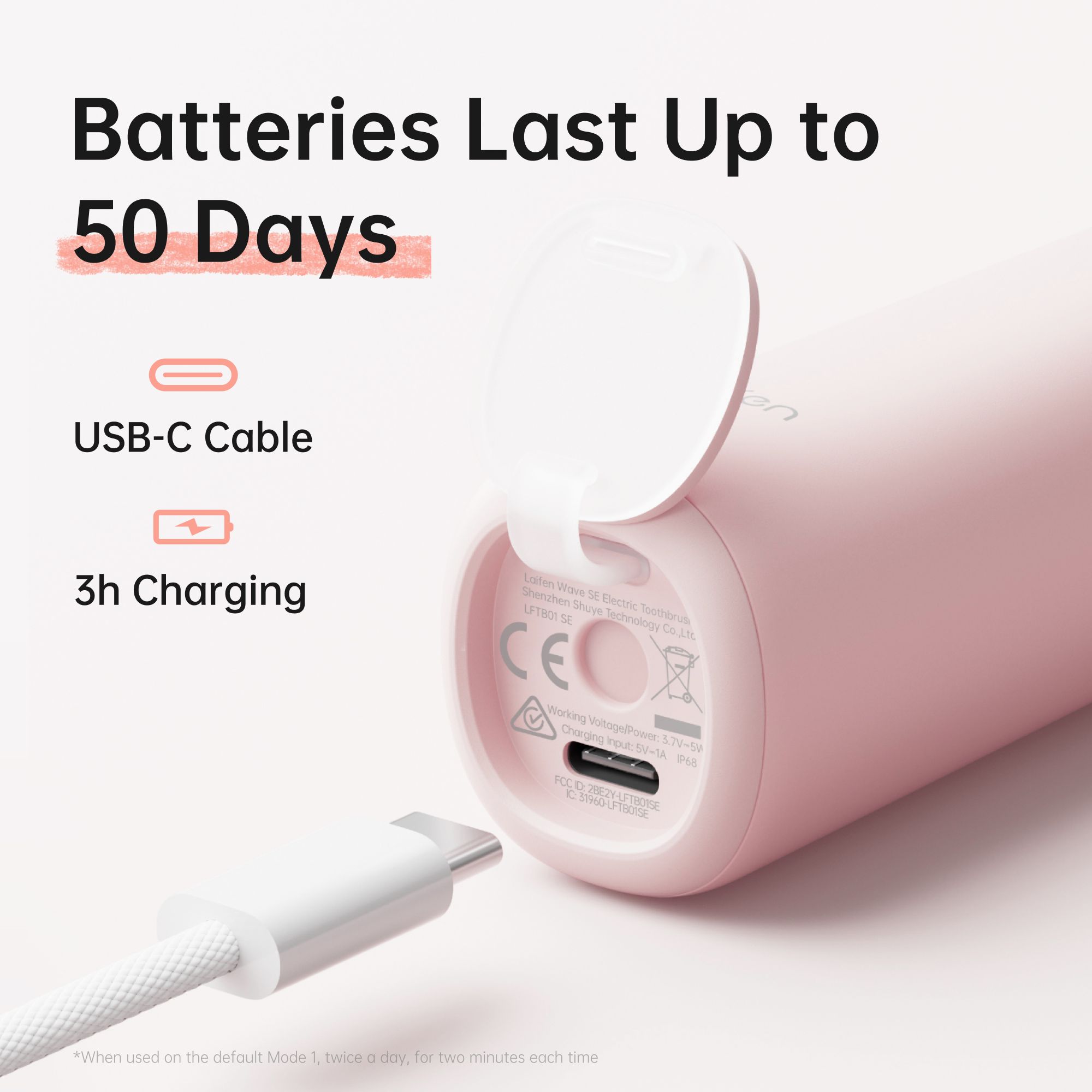 Výdrž baterie: až 50 dní při používání v Módu 1 - 2x denně, 2minutové čištění