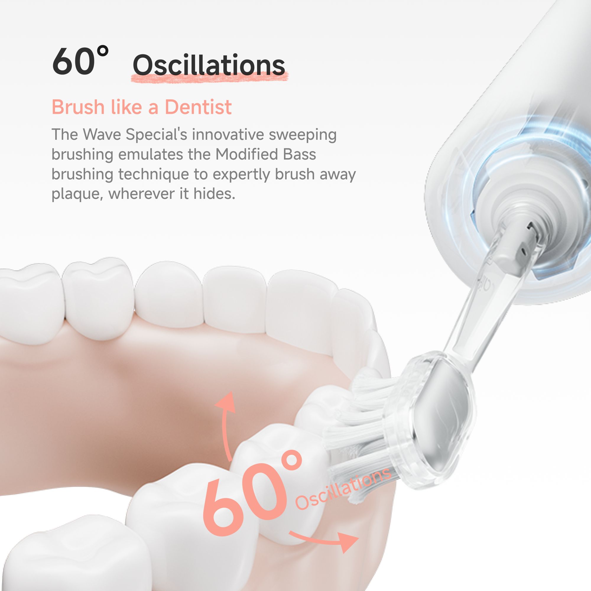 Kombinace až 60° oscilační rotace a 26 000 sonických vibrací za minutu zajišťuje důkladné odstranění plaku, aniž by dráždila citlivé dásně.