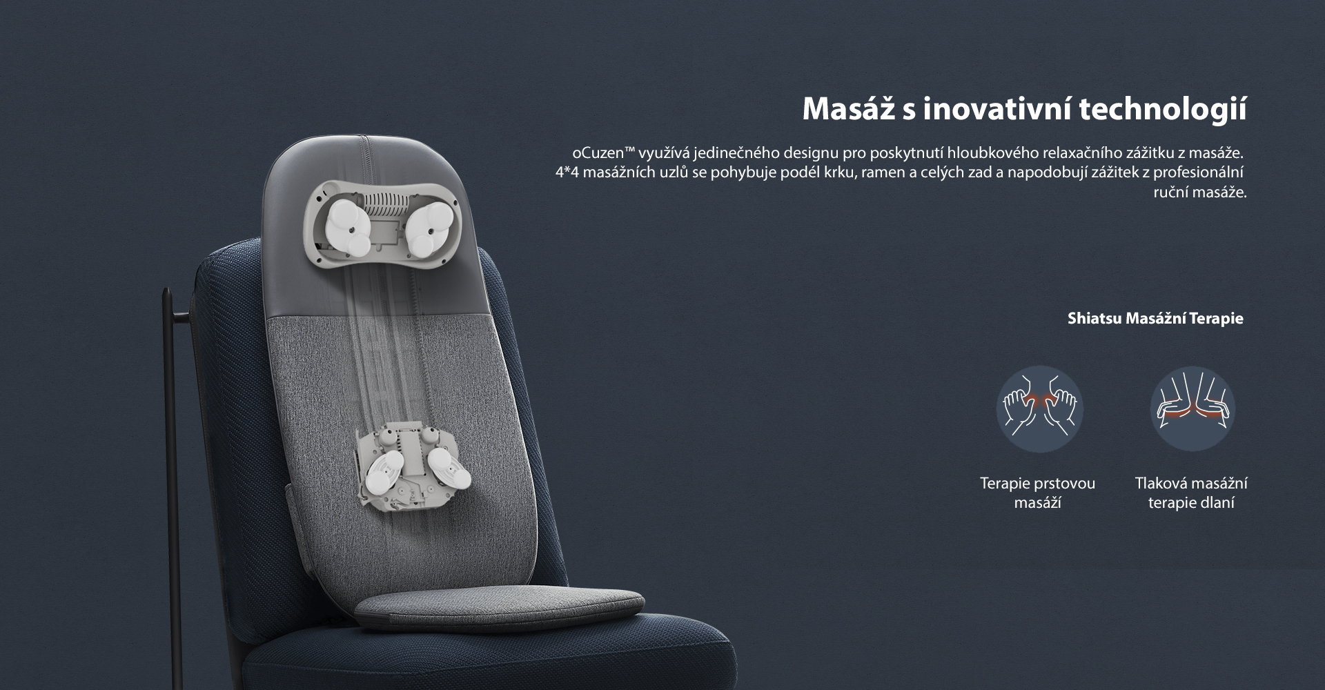 NAIPO oCuzen je shiatsu masážní podložka pro oblast zad a krku, se kterou si budete moci dopřát profesionální masáž v domácích podmínkách. S NAIPO oCuzen získáte ideální nástroj pro bodovou i hloubkovou masáž a lze ji rovněž použít pro úlevu od bolesti. Přístroj nabízí několik možností nastavení jednotlivých funkcí, vyberete si tak masáž přesně na míru Vašim potřebám. Inovativní design ve tvaru S se navíc skvěle přizpůsobí Vašim zádům.