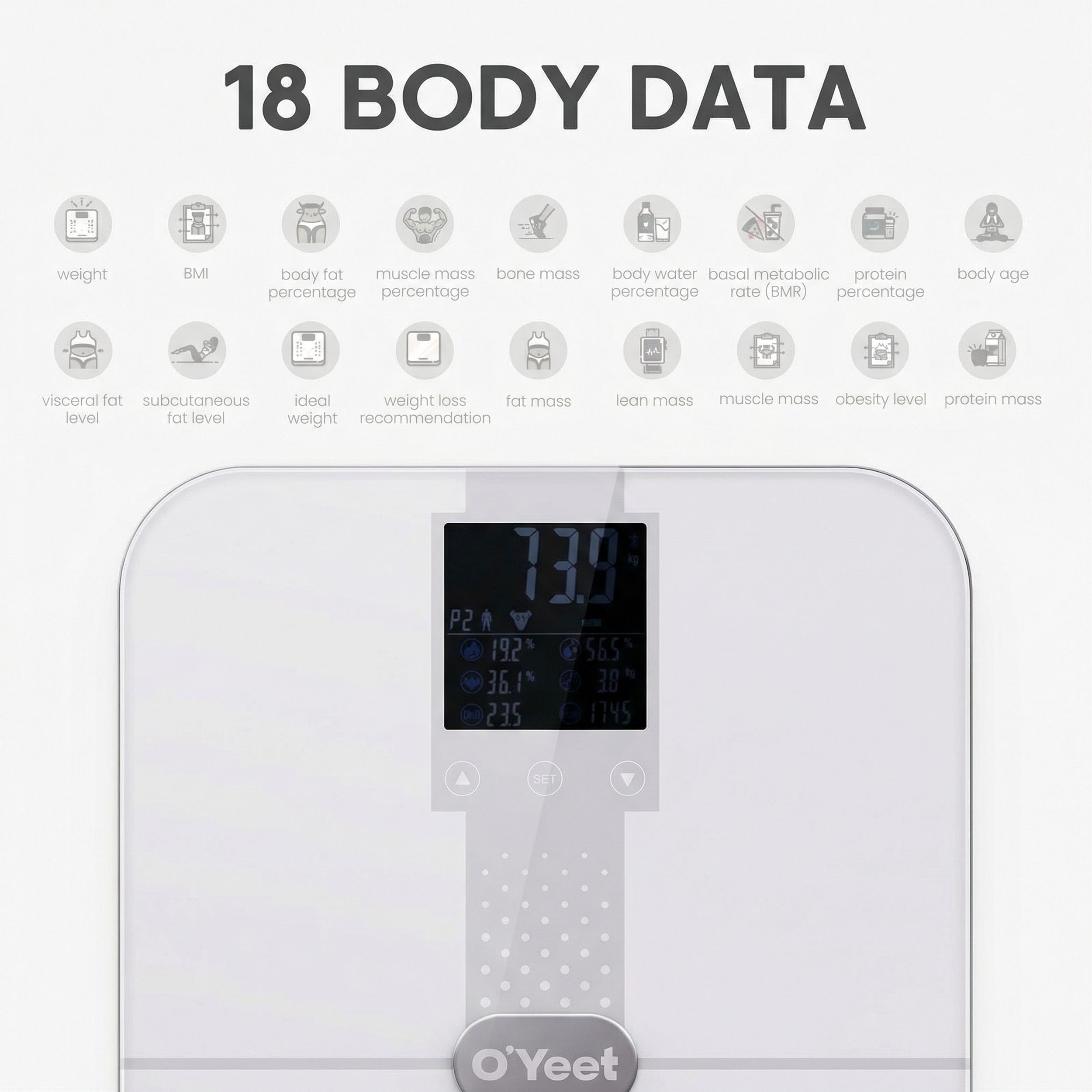 18 tělesných údajů – Váha sleduje komplexní přehled o vašem těle: