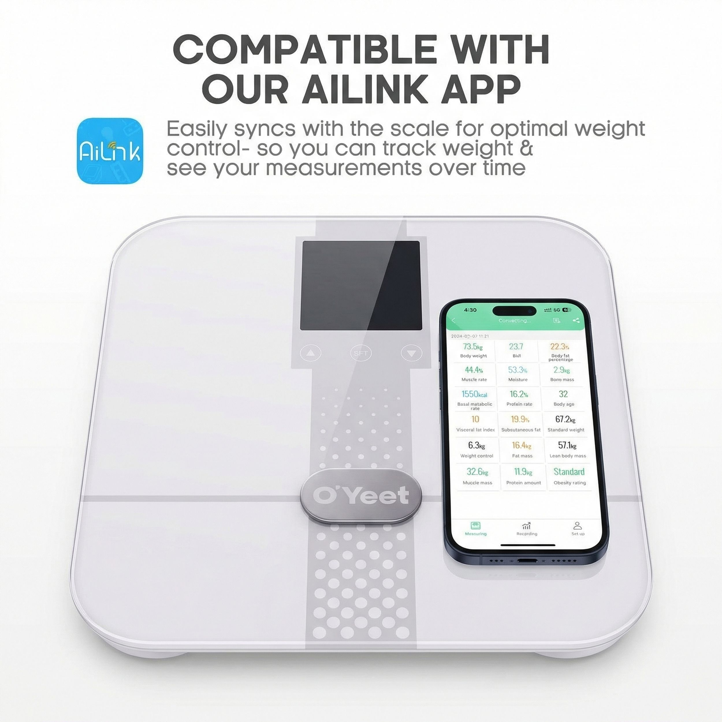 Sledování zdraví v aplikaci – Propojení přes Bluetooth s aplikací AiLink umožňuje sledovat vývoj vašich hodno. Snadno se synchronizuje s váhou pro optimální kontrolu hmotnosti. Můžete tak sledovat vývoj své váhy a prohlížet si historii měření v průběhu času.