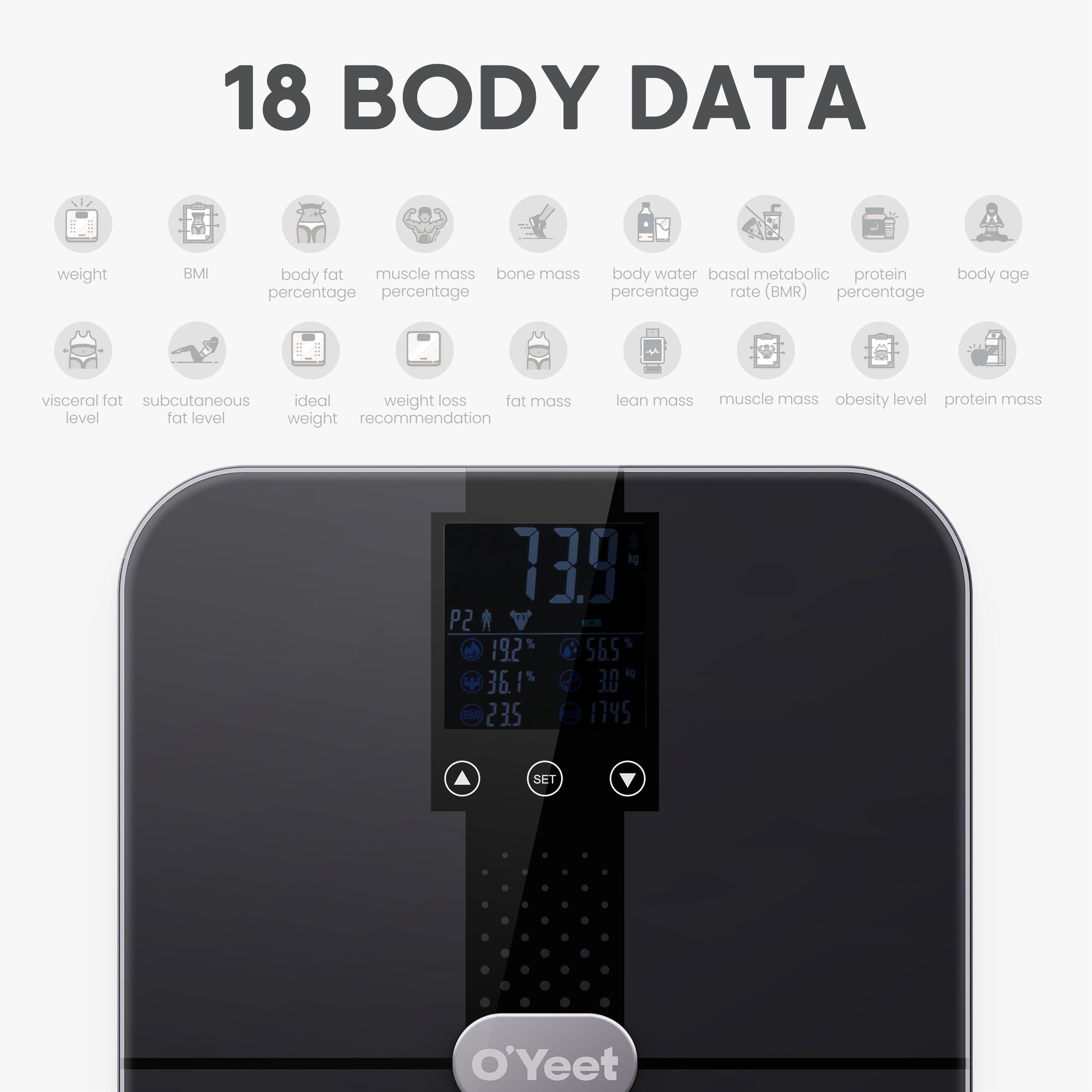 18 tělesných údajů – Váha sleduje komplexní přehled o vašem těle: