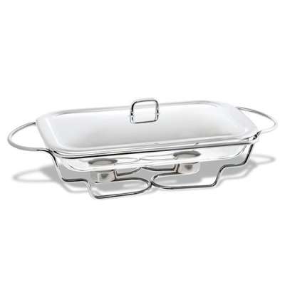 Skleněný pekáč značky NAVA, jehož luxusní design podrthne vaši kuchyň. Obdelníkový pekáč je ohnivzdorný. Nerezová základna na svíčky zaručí příjemný ohřev vašeho pokrmu.