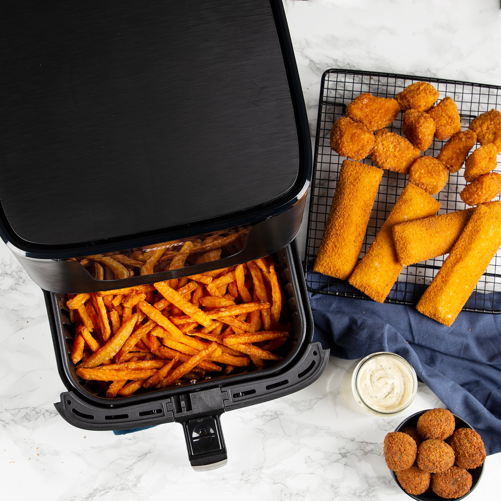 Horkovzdušná fritéza Nova 180176 o objemu 5,2 L v elegantním provedení s digitálním dotykovým panelem.
