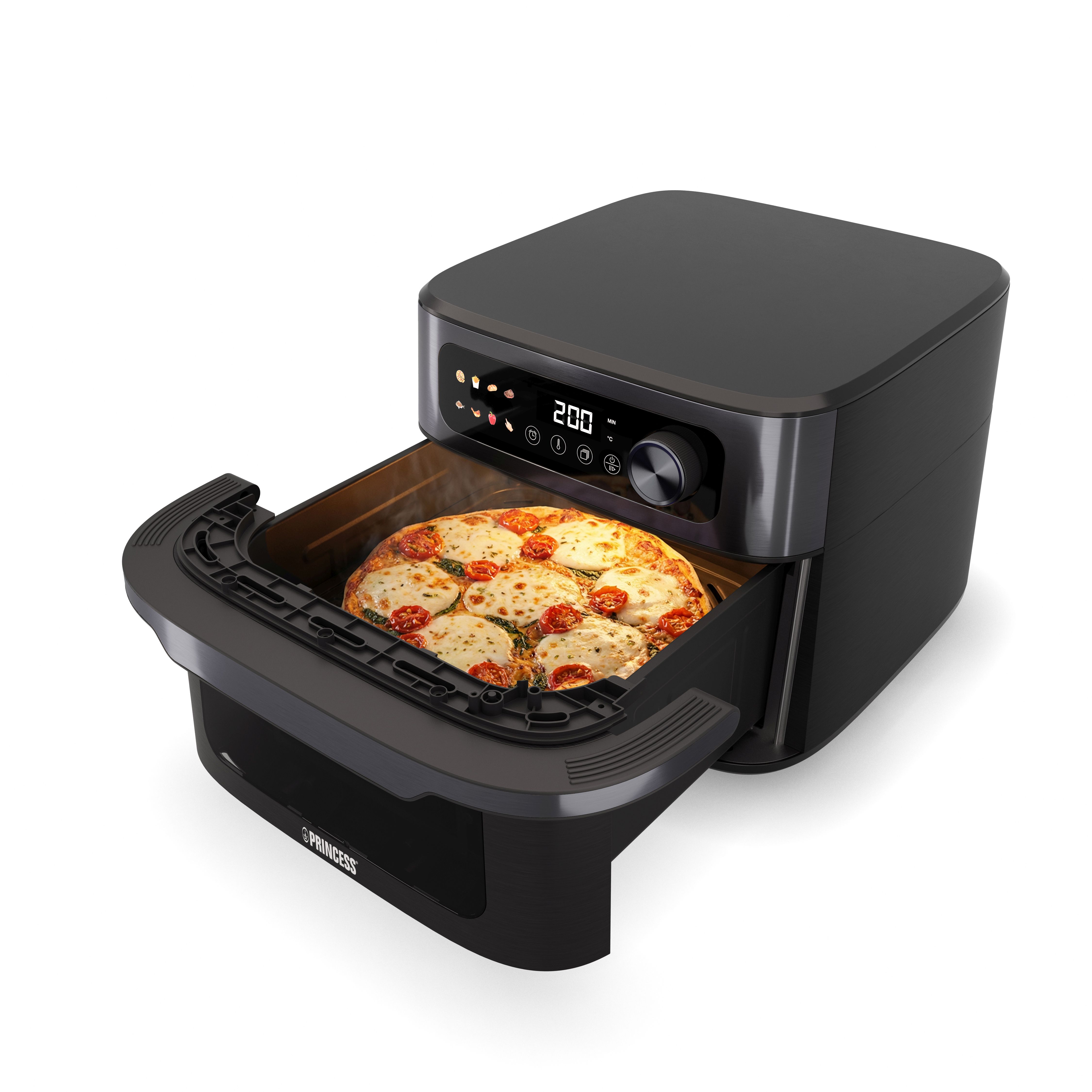 Připravte chutná a křupavá jídla pro celou rodinu s horkovzdušnou fritézou Princess 182480 MaxiCrisp. Díky velkému objemu 10 litrů a prostornému čtvercovému koši snadno připravíte pizzu, hranolky i větší porce masa najednou. Moderní matné provedení a digitální ovládací panel dodají vaší kuchyni styl i praktičnost.