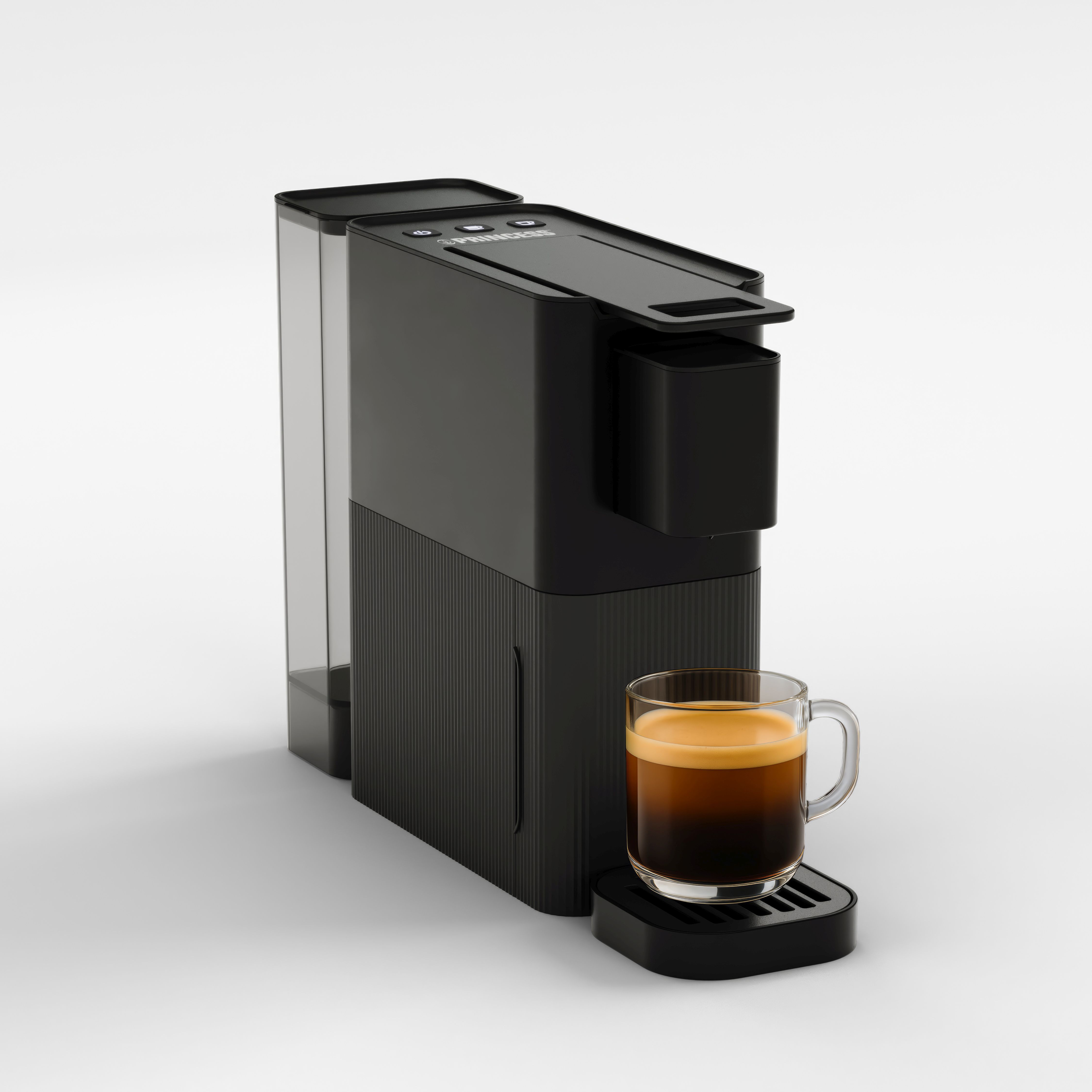 Dopřejte si šálek lahodné kávy jediným stisknutím tlačítka. Kapslový kávovar Princess je navržen pro použití s kapslemi Nespresso® a kompatibilními alternativami, díky čemuž si vychutnáte intenzivní aroma a plnou chuť v pohodlí domova. Elegantní a kompaktní design se hodí do každé kuchyně a zpříjemní vaše každodenní kávové rituály.