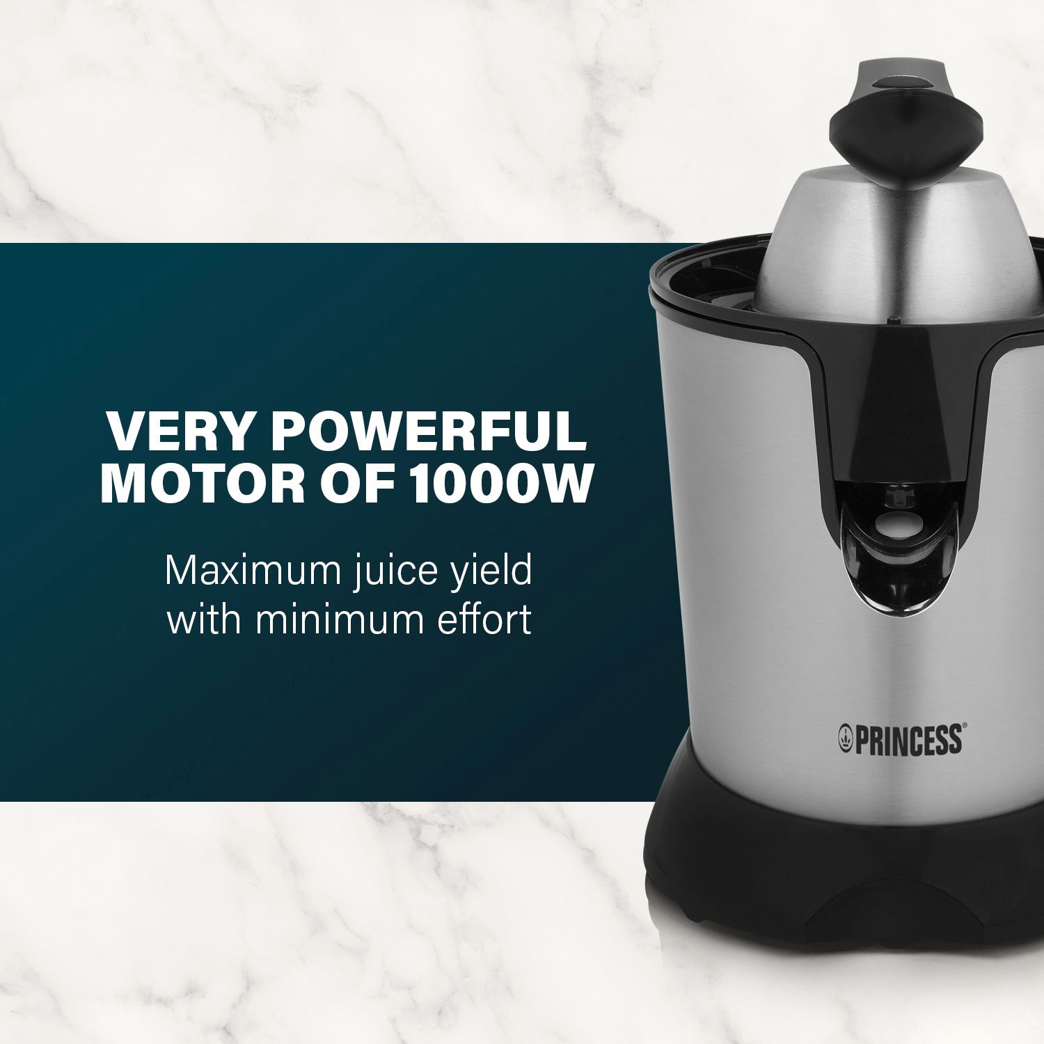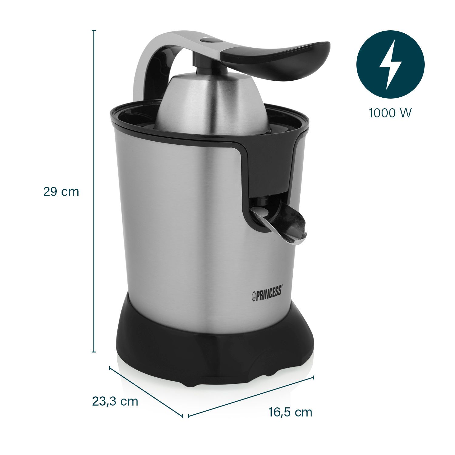 Vychutnejte si čerstvou citrusovou šťávu každý den. Odšťavňovač citrusů Princess 201873 s extra výkonným motorem 1000 W si snadno poradí s pomeranči, citrony i grapefruity. Elegantní nerezové provedení doplněné černými detaily působí moderně a zároveň zaručuje dlouhou životnost.