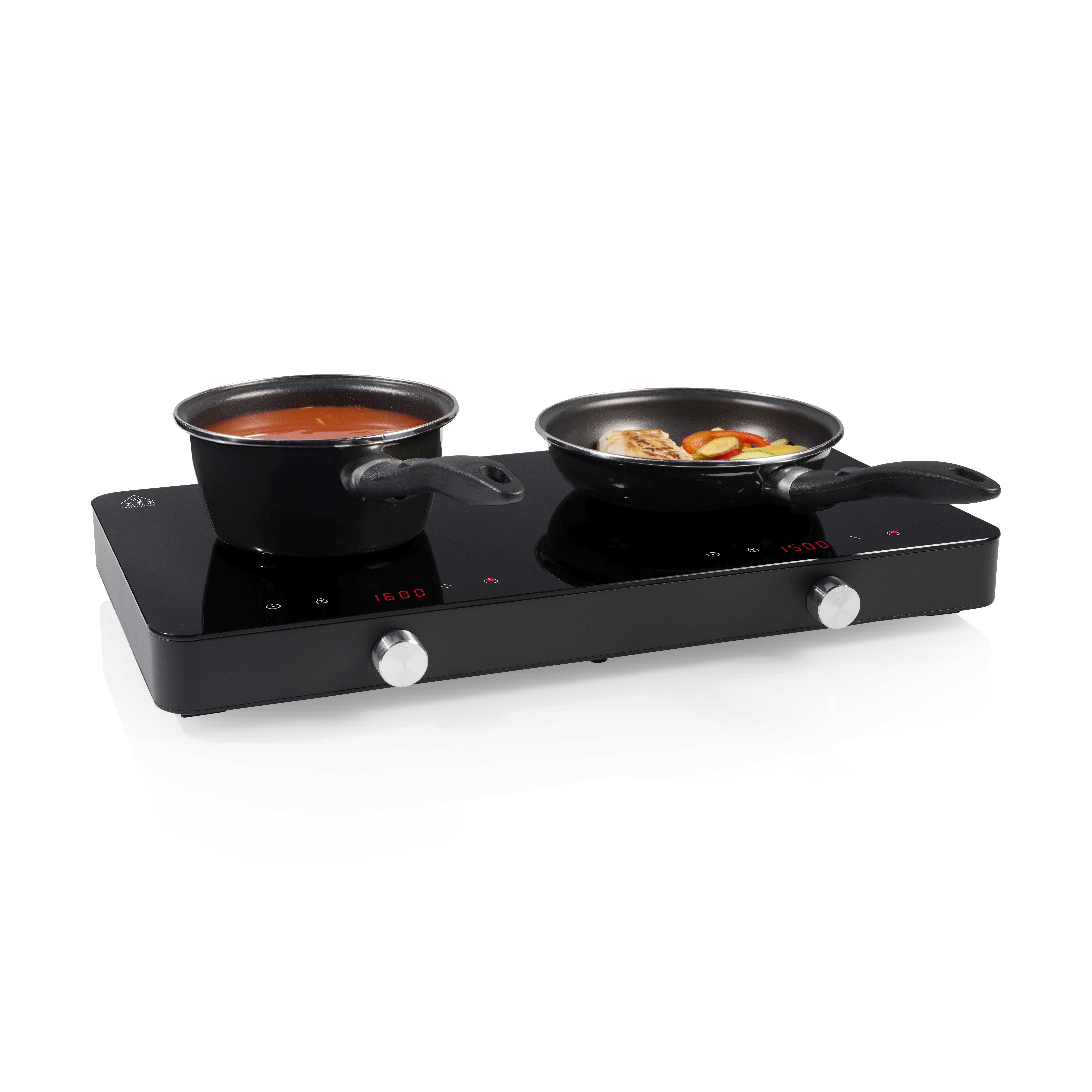 Indukční varná deska, dvojploténková, časovač, automatické rozpoznání nádoby, 200-1500 W, dotykový panel