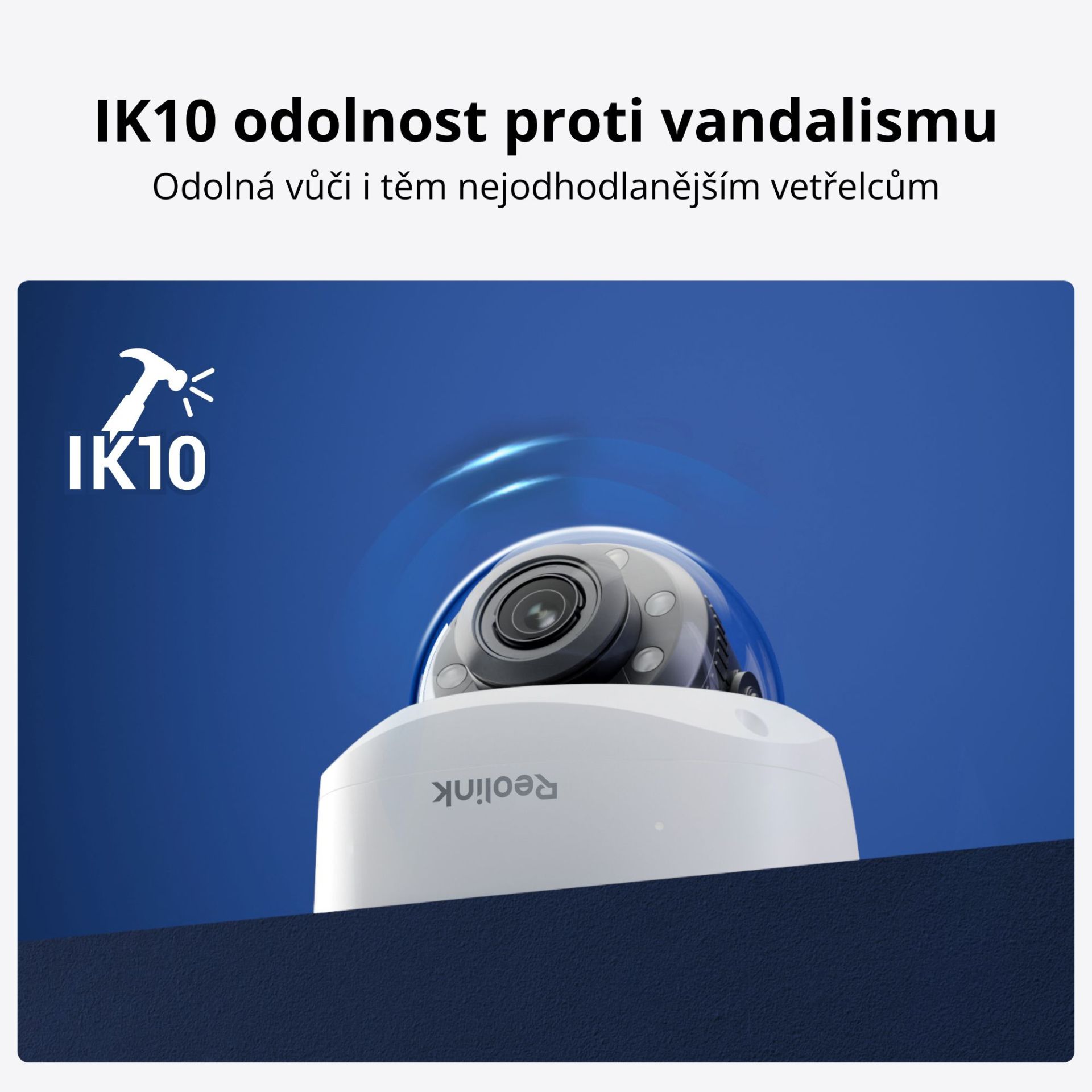 Stupeň odolnosti proti vandalismu IK10 – Kamera P437 je zkonstruována tak, aby odolala i těm nejtvrdším podmínkám. Díky pouzdru s nejvyšším stupněm odolnosti proti vandalismu IK10 je připravena čelit jakýmkoli pokusům o poškození. Ať už se jedná o úmyslné útoky nebo náhodné nárazy, vaše kamera zůstane neporušená a funkční.