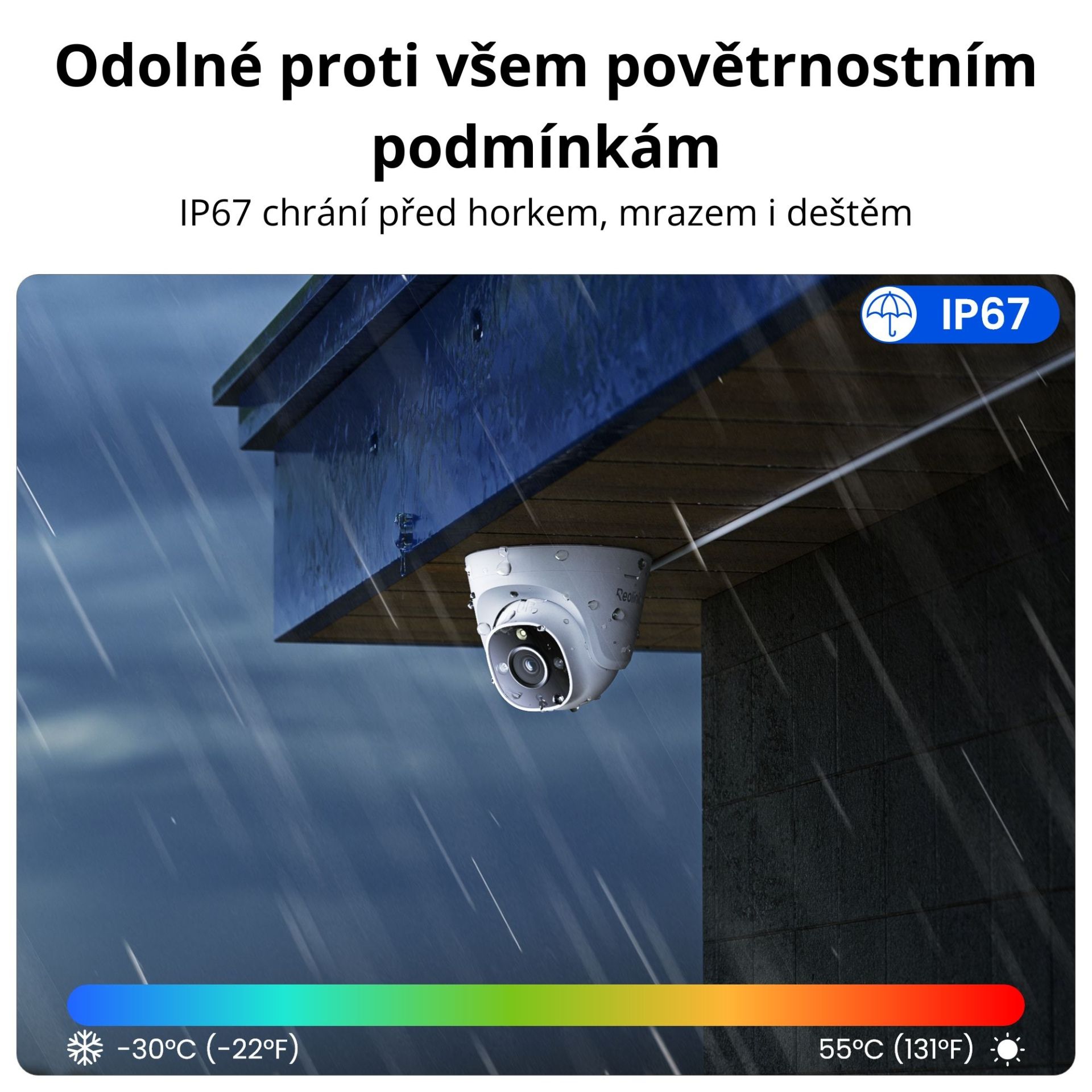 Kamera je vyrobena z celokovového pouzdra a má certifikaci IP67, což zajišťuje odolnost proti vodě a prachu. Je schopna fungovat v teplotním rozmezí od -30°C do 55°C, což znamená, že bude fungovat spolehlivě v různých prostředích, ať už se jedná o rezidenční nebo komerční použití.