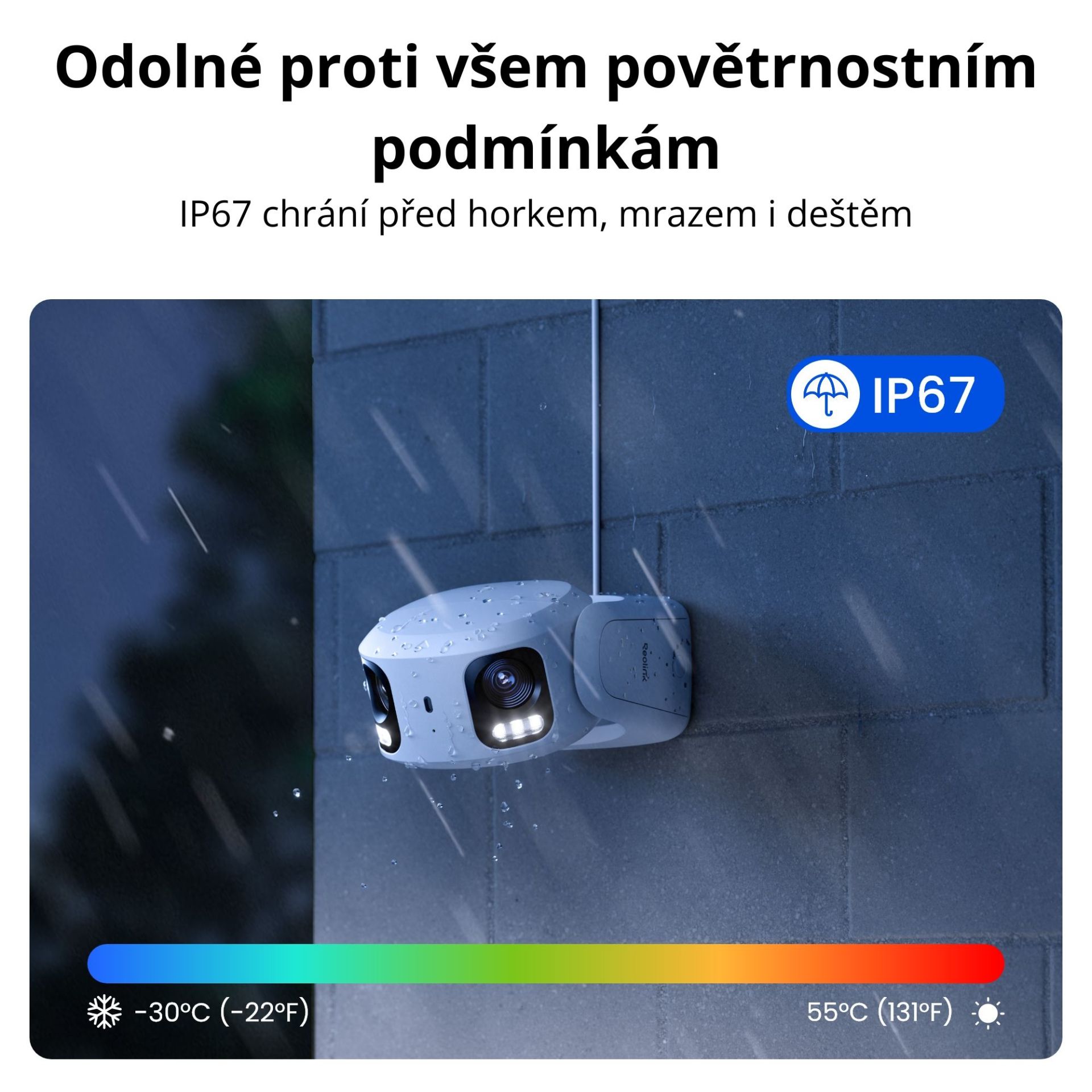 4K Ultra HD kamera, 180° dvojitý objektiv, barevné noční vidění, voděodolnost s certifikací IP67 a obousměrné audio