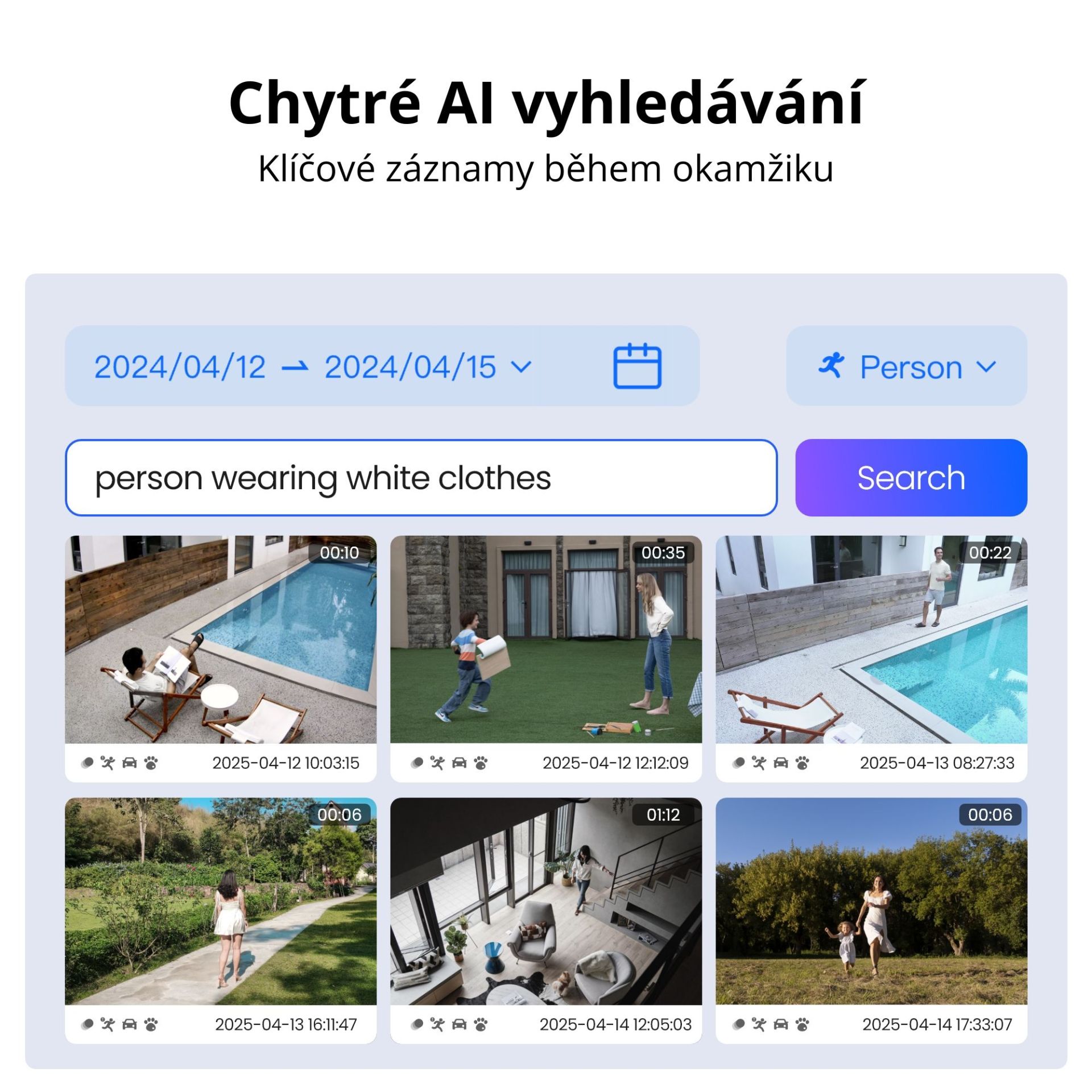AI Video Search: ano (musí být podporováno také na kameře).