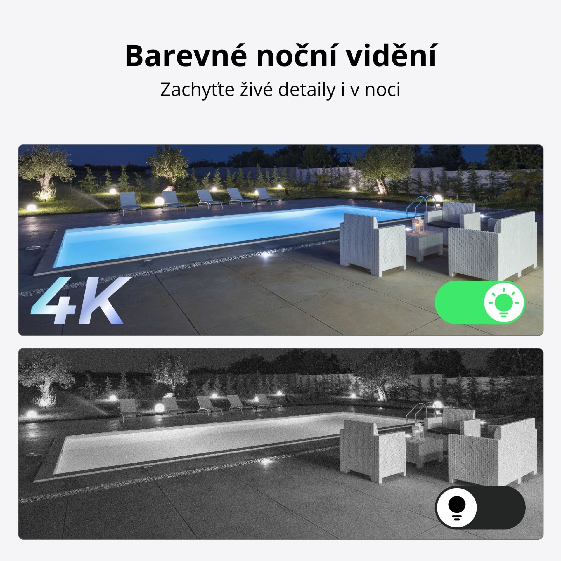 Barevné noční vidění: s reflektory 4ks//4000K/600 lumenů.
