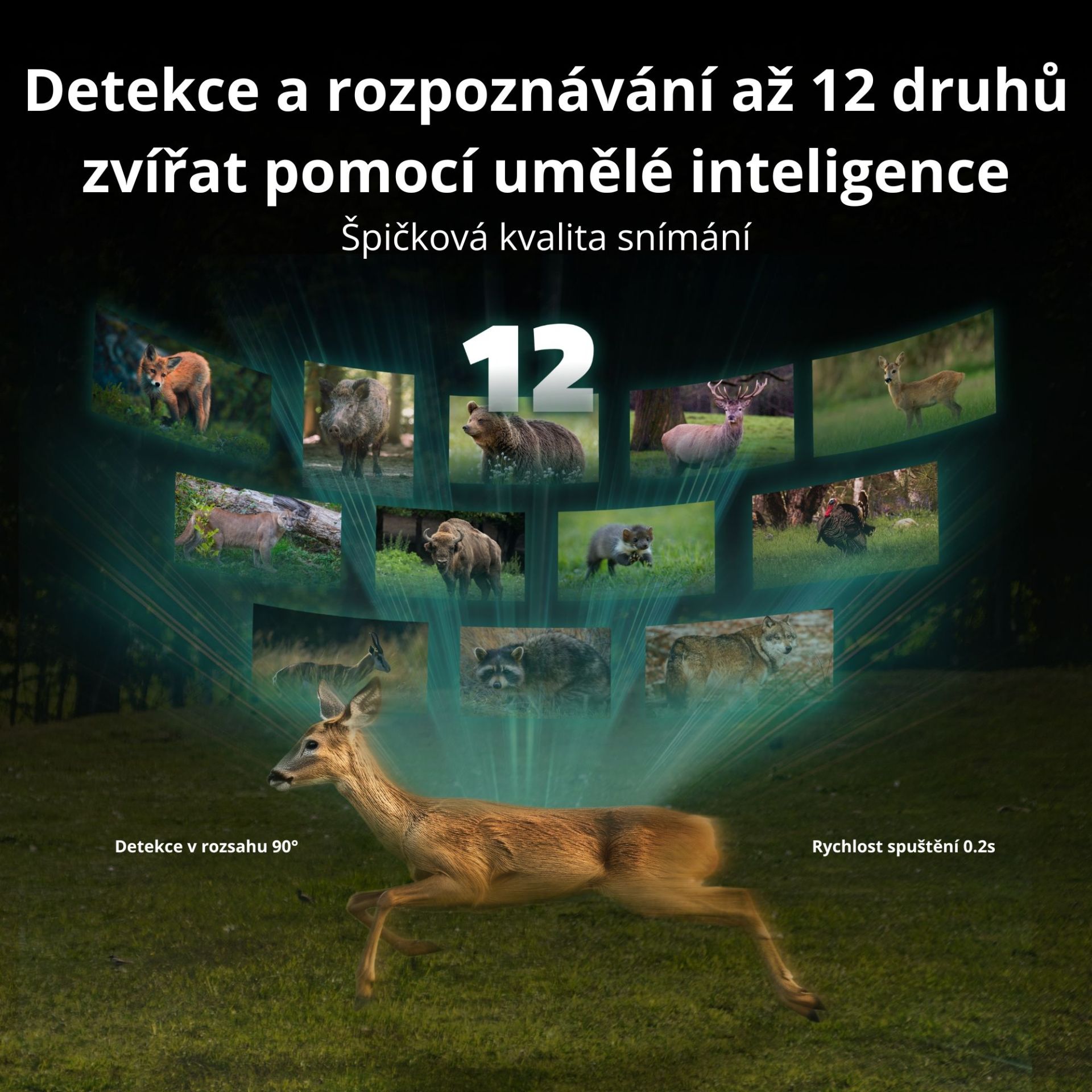 Talon Series T130 vyniká rozpoznáváním druhů zvířat, identifikuje až 12 různých druhů pomocí Camovue Cloud. S ultra rychlou 0,2sekundovou spouští a širokým 90° detekčním úhlem nikdy nezmeškáte klíčový okamžik v přírodě. Ať už je to rychlý úprk jelena, kamera zachytí až 3 snímky, což zajišťuje, že vždy získáte nejjasnější obraz divoké zvěře v akci.