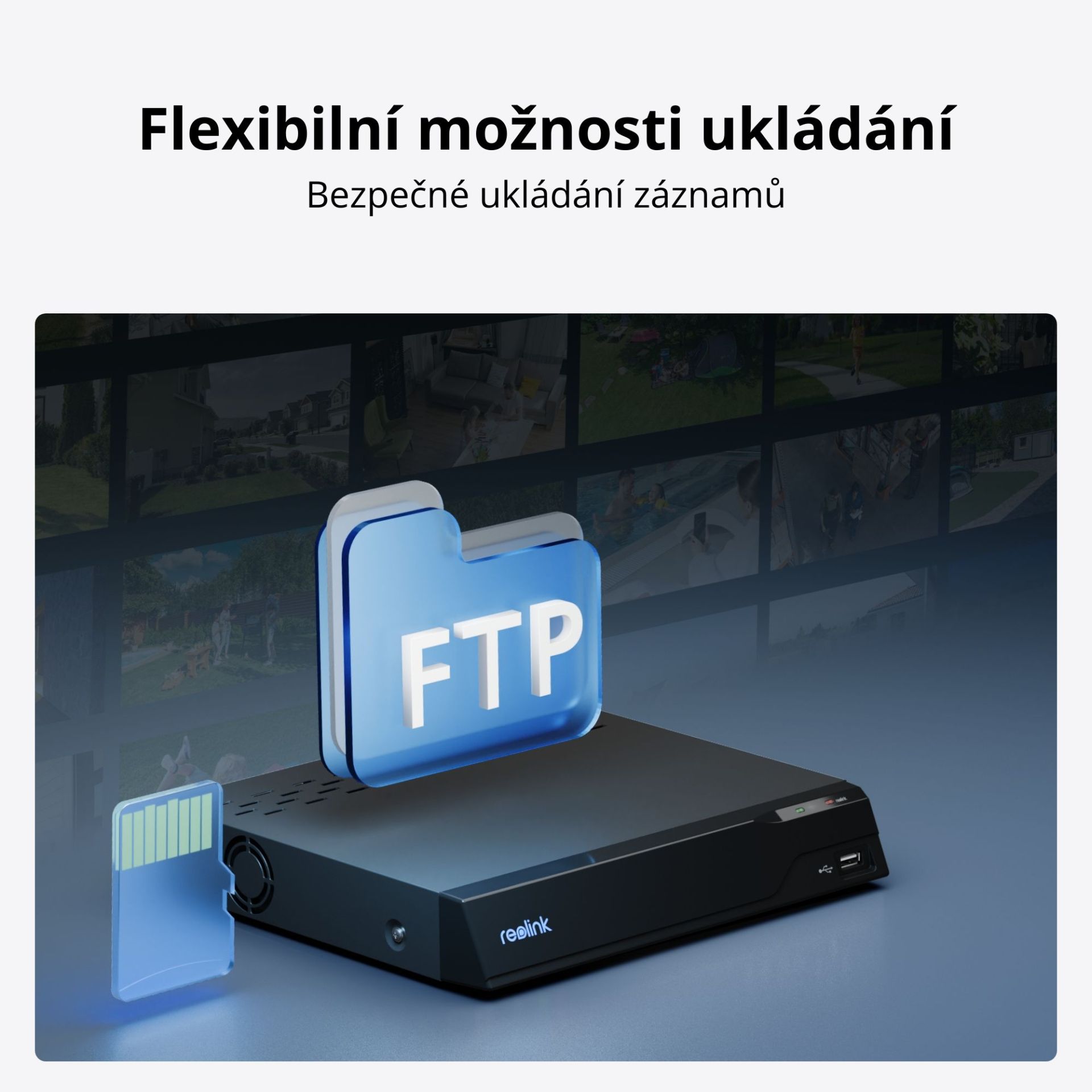 5. Flexibilní ukládání záznamů: Možnost ukládání na microSD kartu, Reolink NVR nebo FTP server.