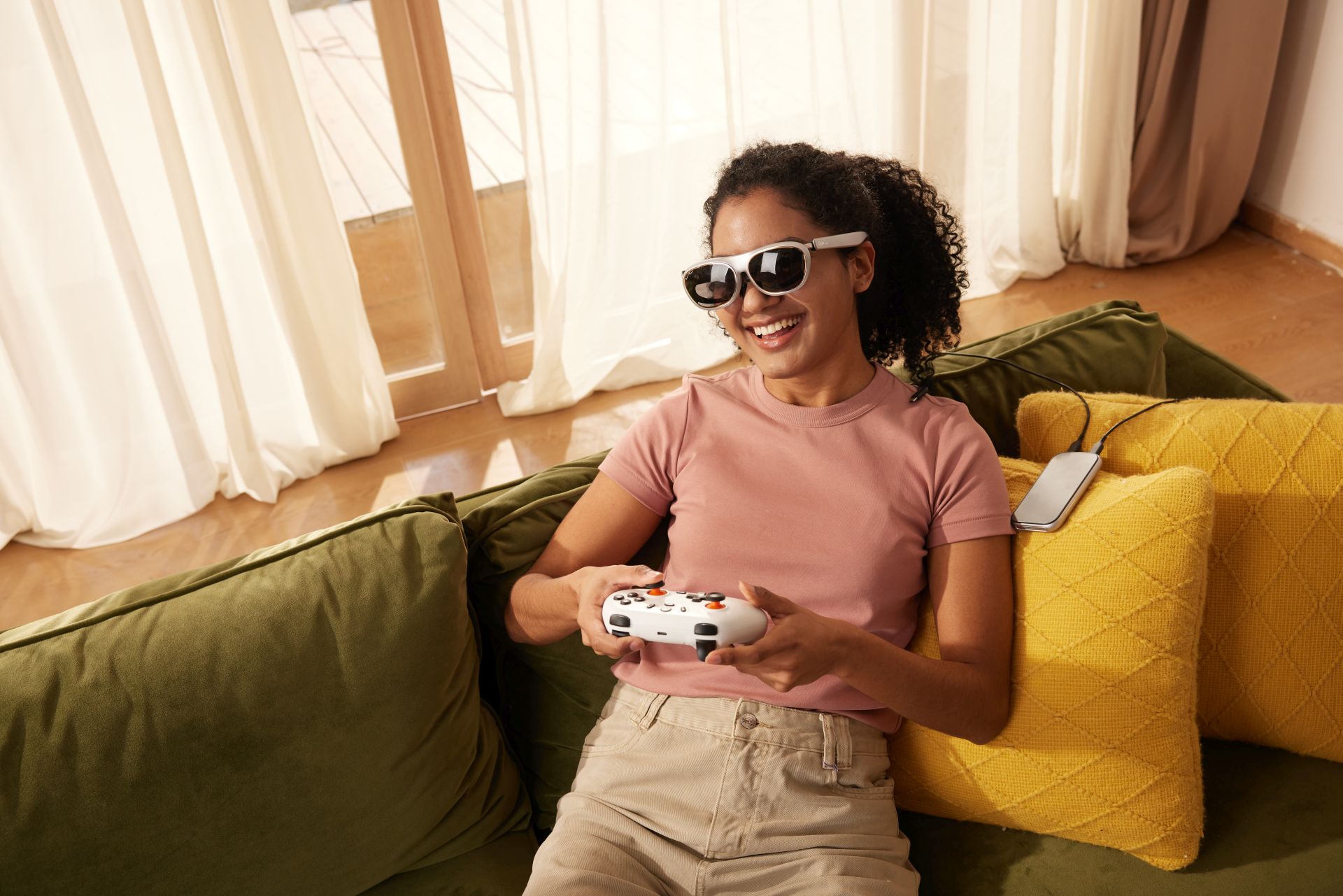 S Rokid Max 2 AR brýlemi máte přenosnou pracovní stanici, herní centrum a zábavní centrum v jednom lehkém rámu. Zůstaňte produktivní a bavte se, ať už jste v kavárně, v letadle nebo u svého stolu.