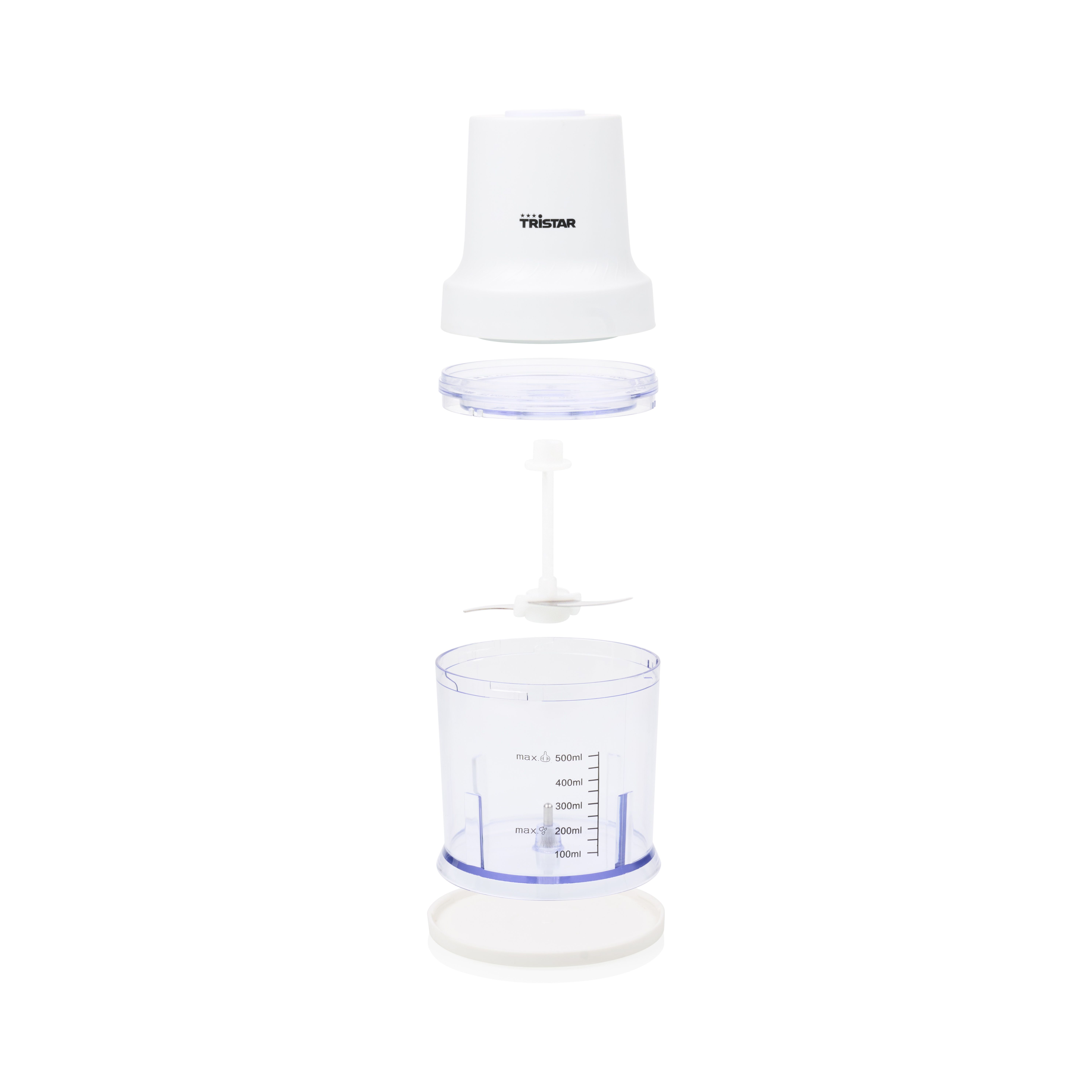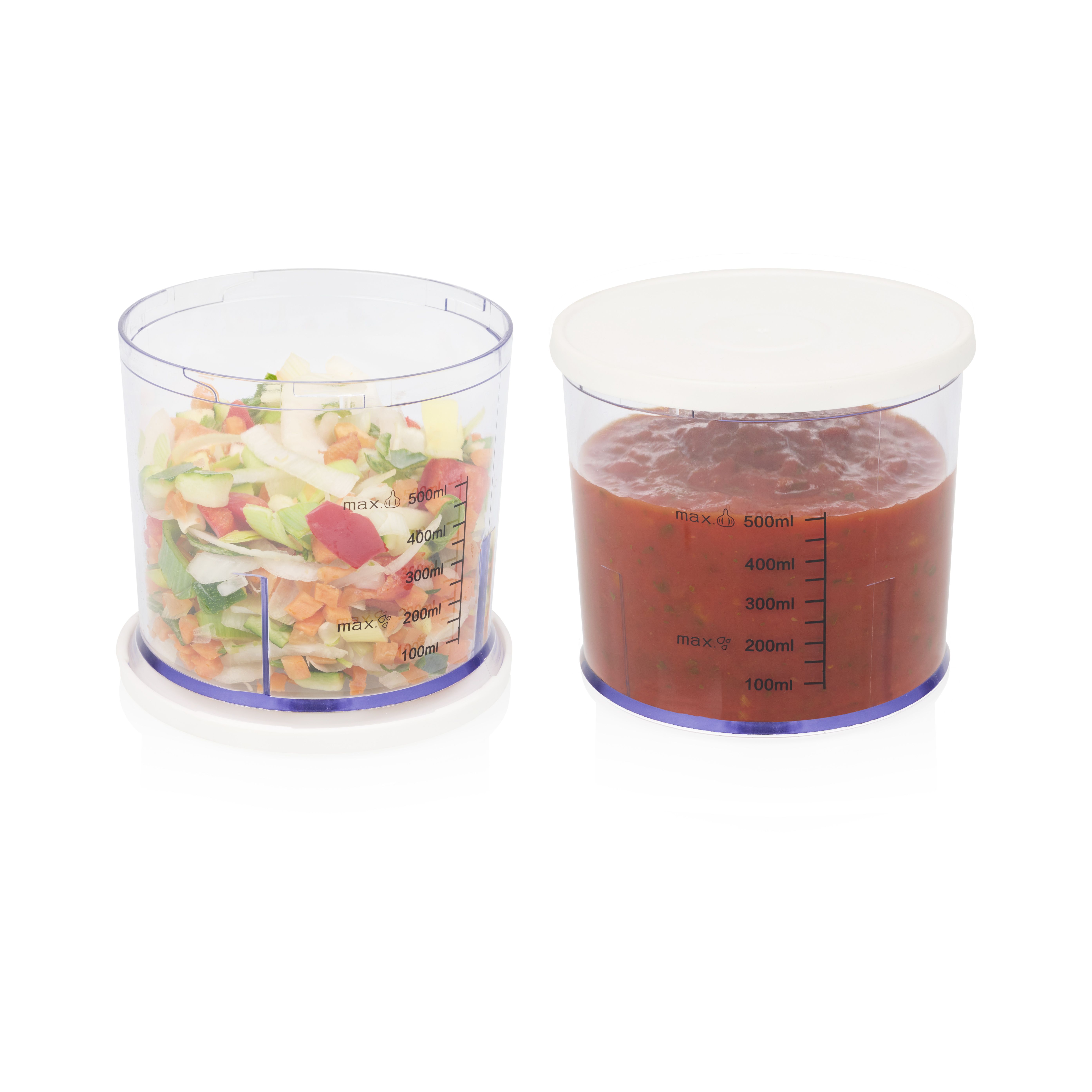 2 čepele z nerezové oceli: Ostré a odolné čepele garantují perfektní nasekání bez námahy.- Objem 0,5 l: