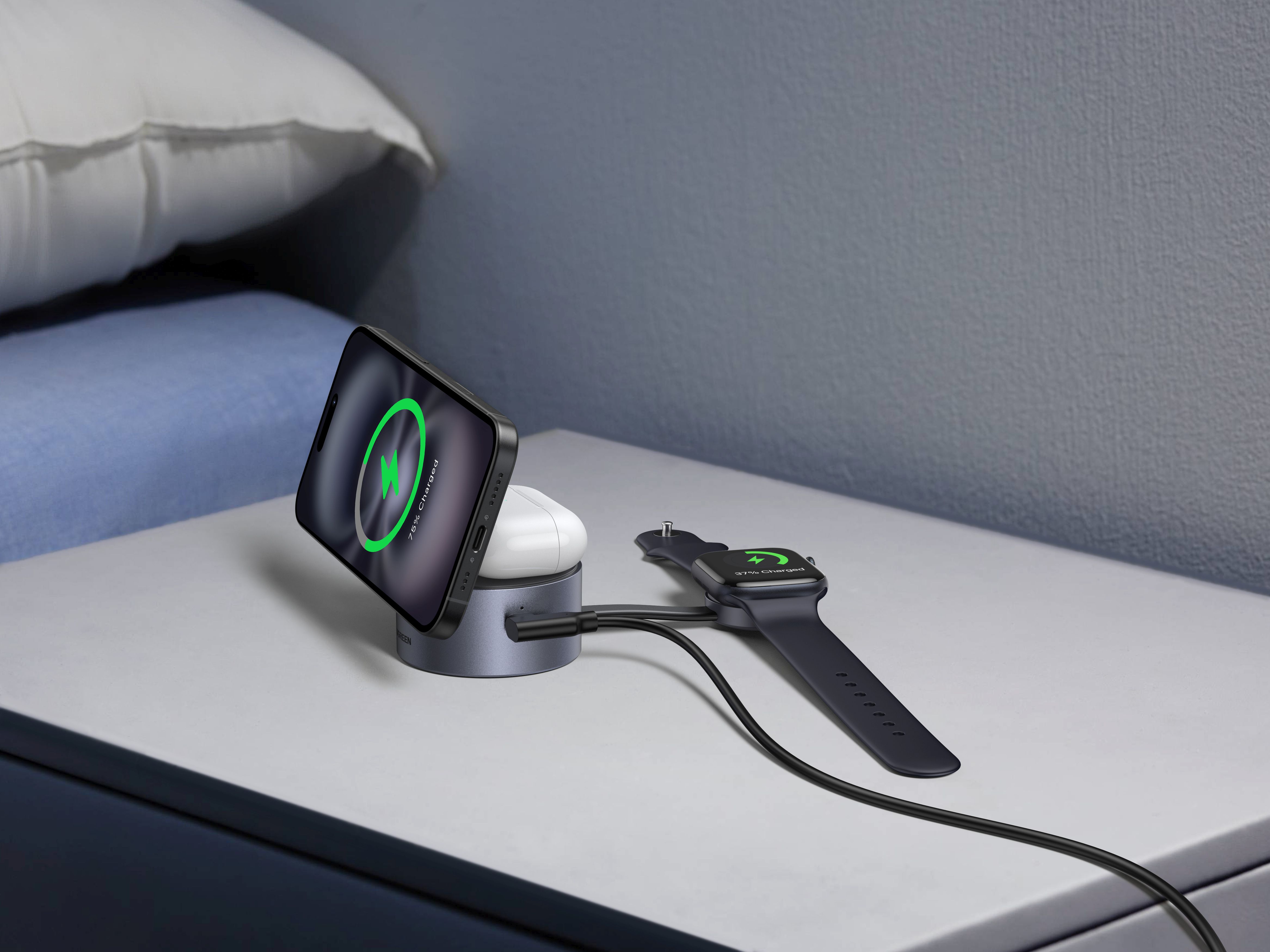 Jen jedno elegantní zařízení, které se postará o váš iPhone, Apple Watch i AirPods – současně, rychle a bezpečně.