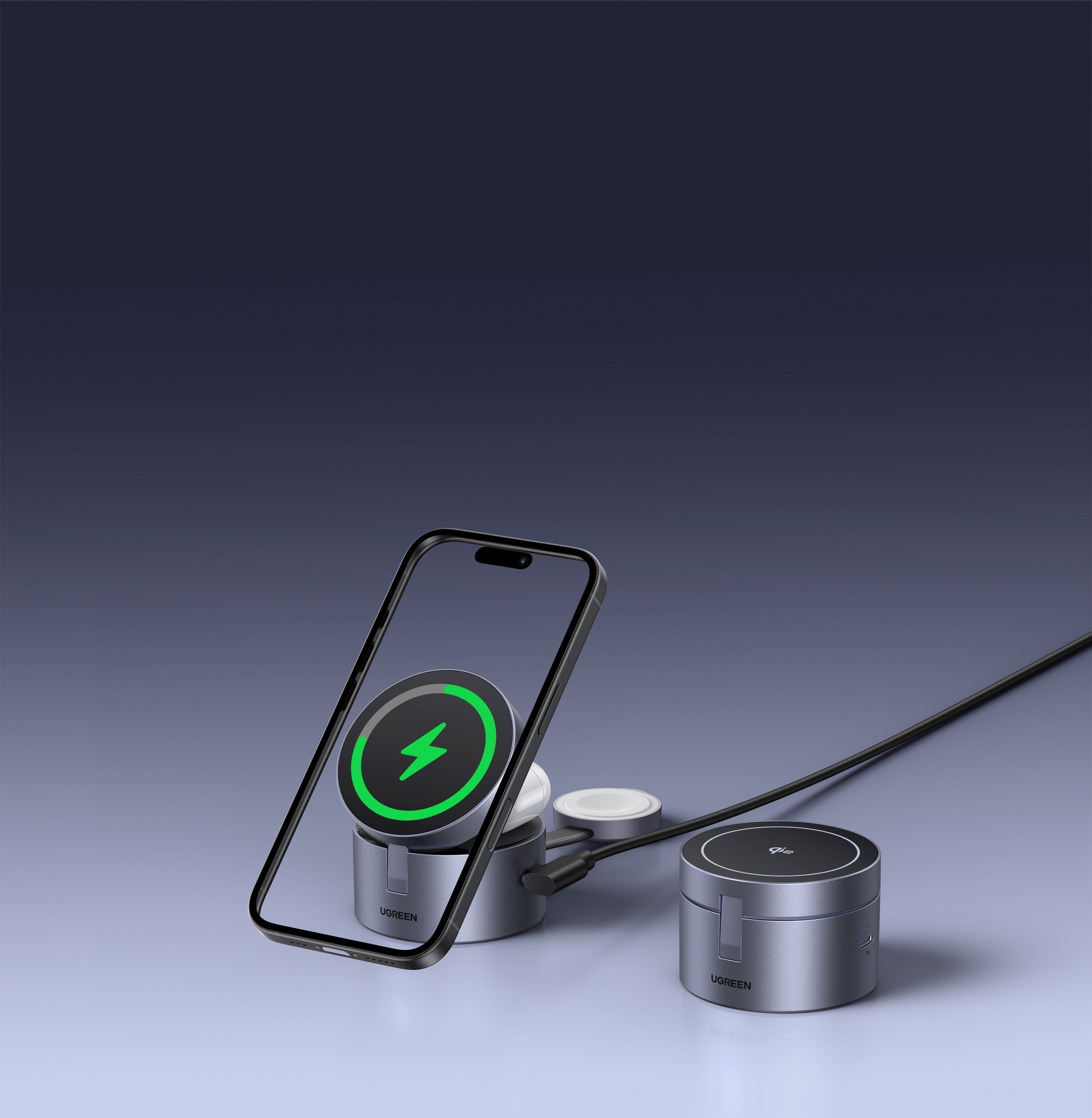 UGREEN 65148 Bezdrátová nabíječka 3v1 Magflow Qi2.2