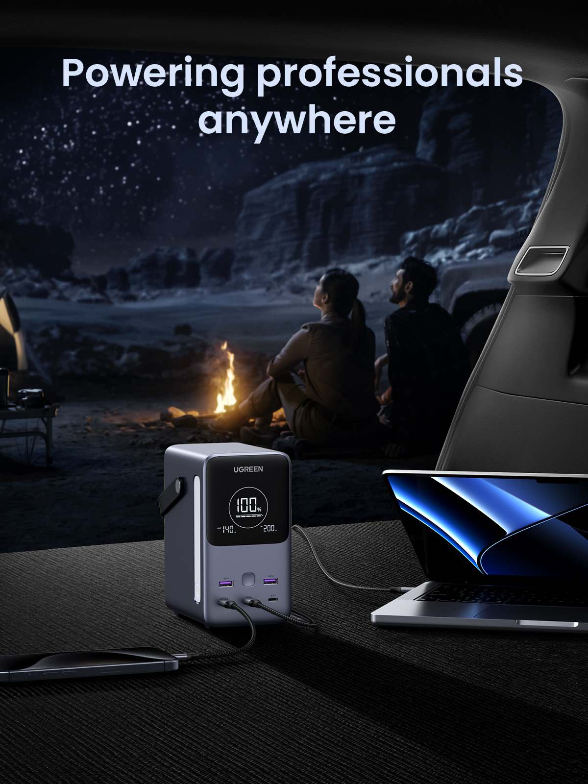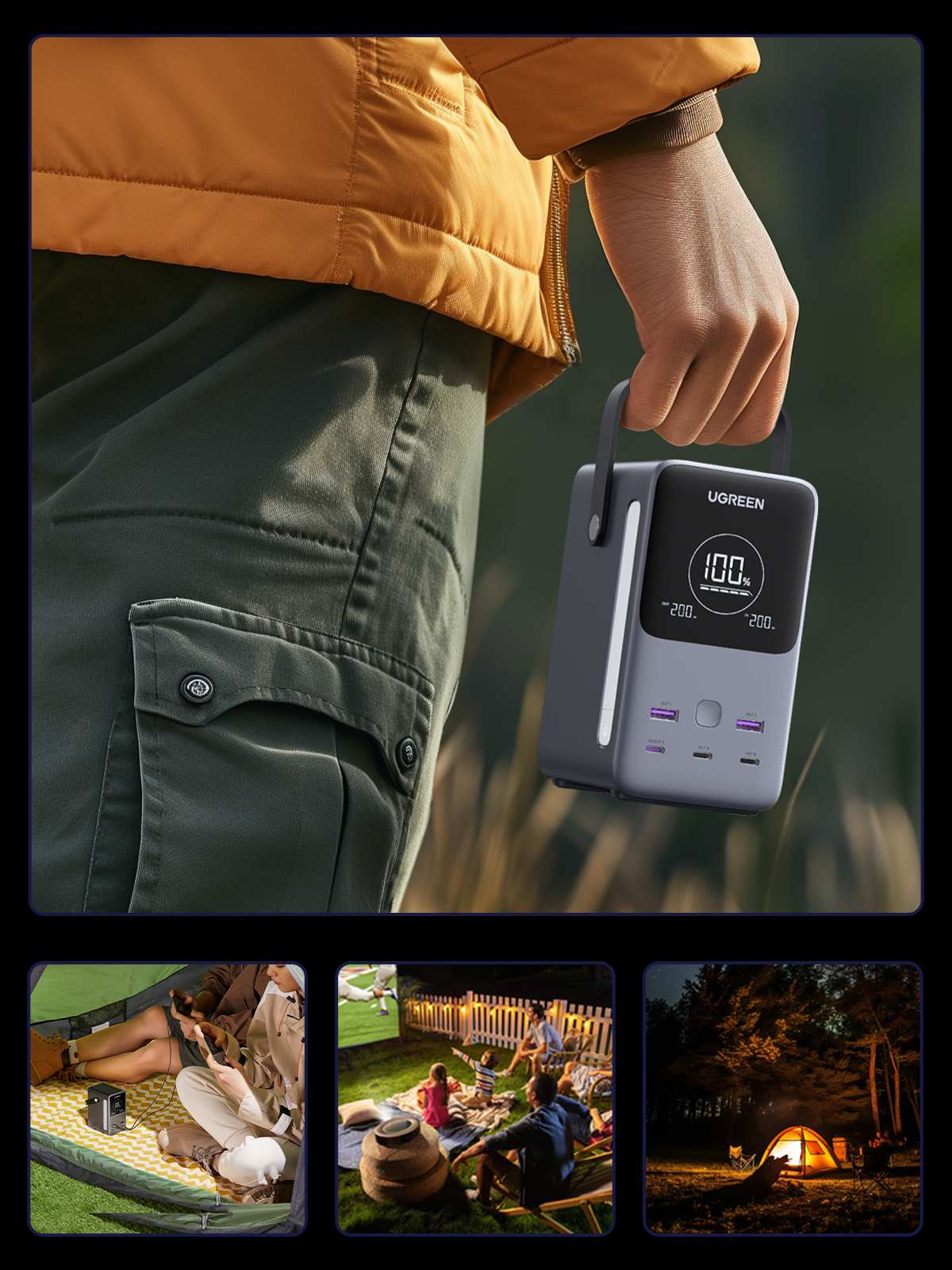 S rozměry 77*106,3*145,3 mm a hmotností pouhých 1637 g je UGREEN 25286 snadno přenosná. Přesto nabízí dostatečný výkon pro víkendový výlet – až 9,6 nabití pro iPhone 15 Pro, 5,2 nabití pro Samsung S24 Ultra a 2 nabití pro MacBook Air M2 15".