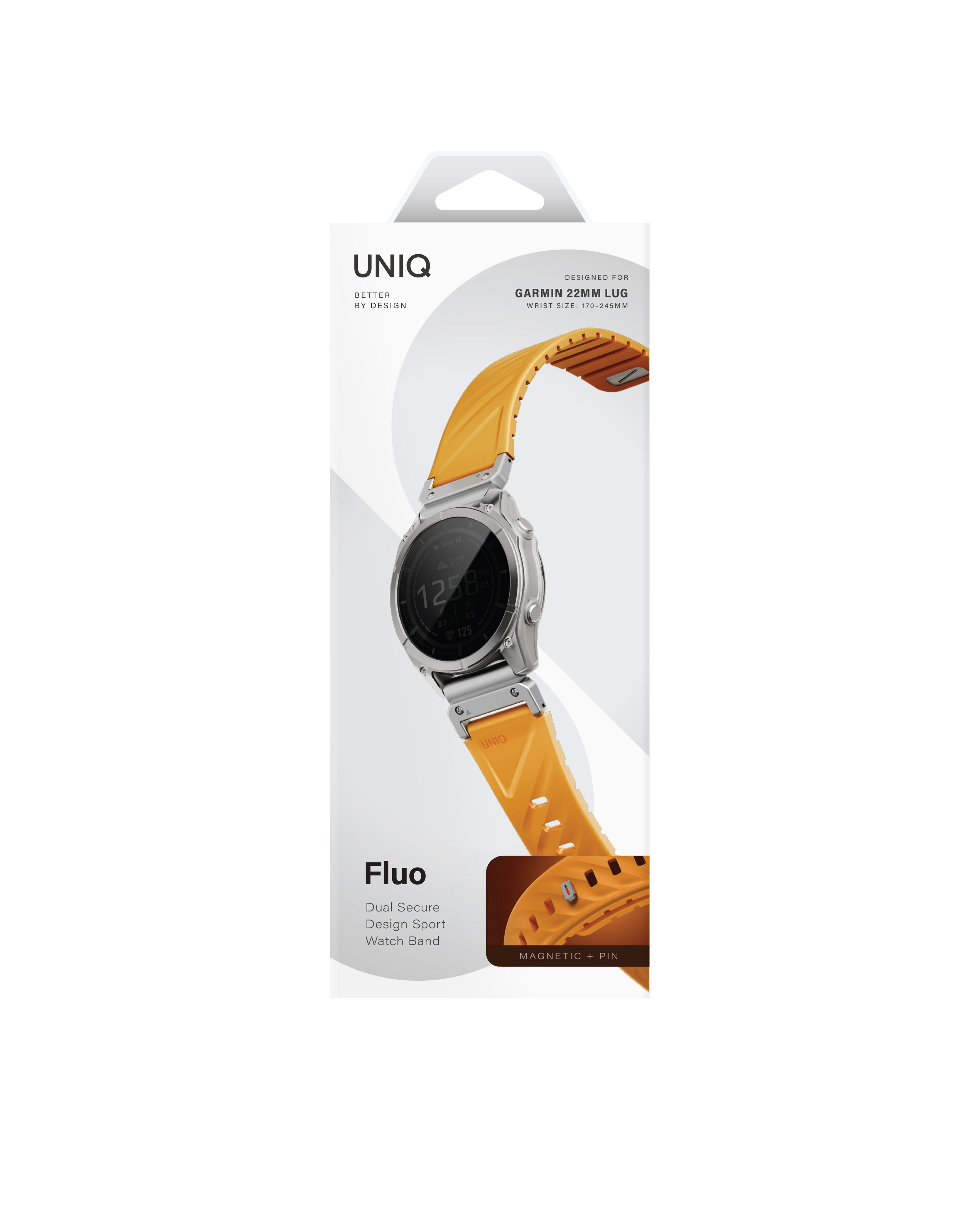 UNIQ Fluo magnetický řemínek pro Garmin SmartWatch Quick Release/QuickFit 22 mm, Pale orange