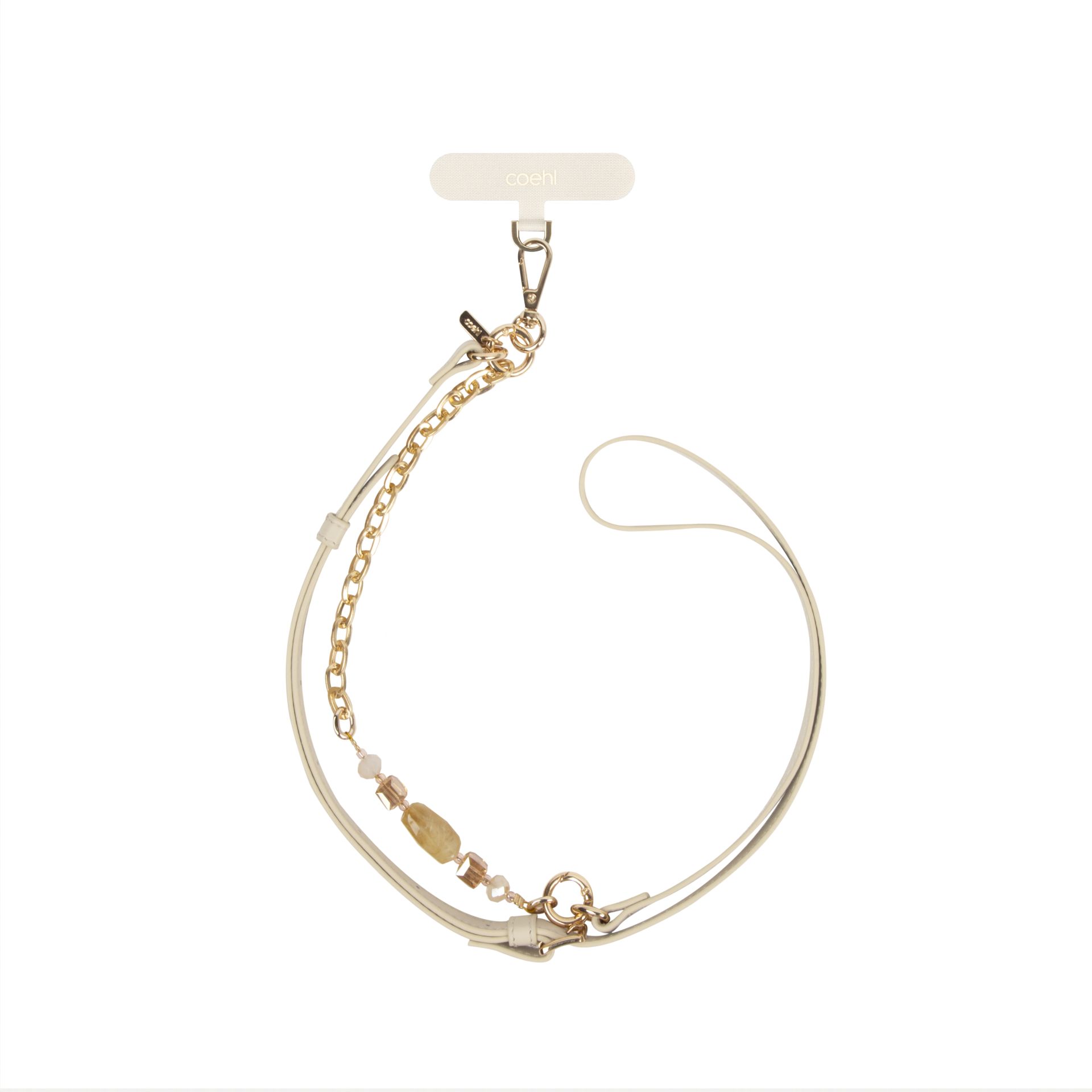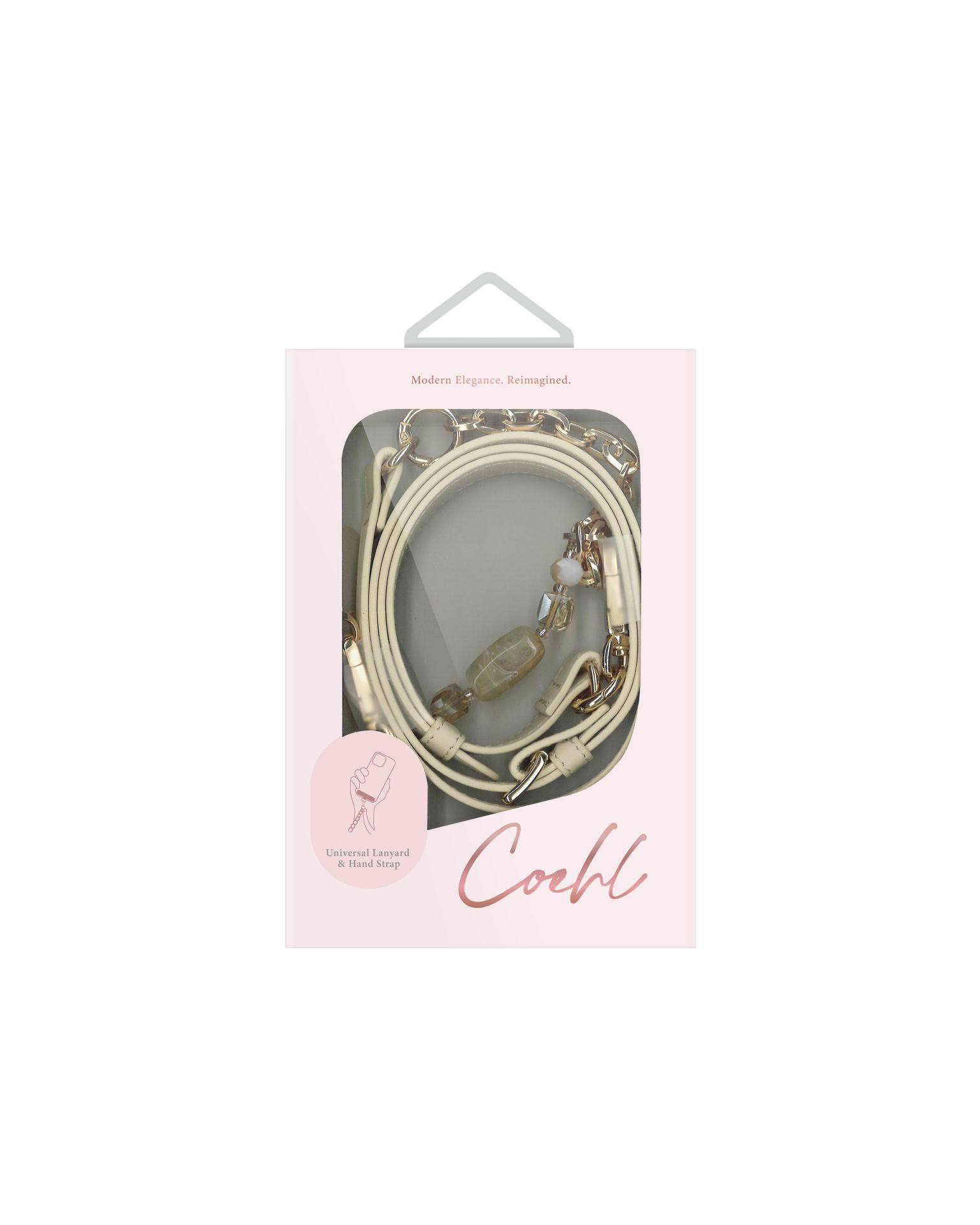 UNIQ COEHL Caryne 2v1 univerzální šňůrka na krk a poutko na ruku na mobilní telefon, Cream