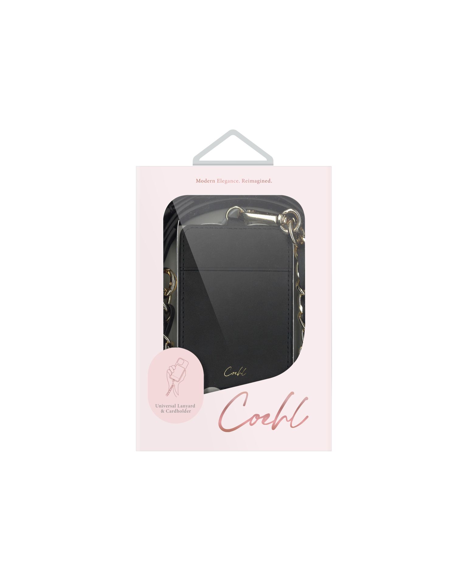 UNIQ COEHL Caryne 3v1 univerzální šňůrka a poutko na ruku s držákem karet na mobilní telefon, Ebony