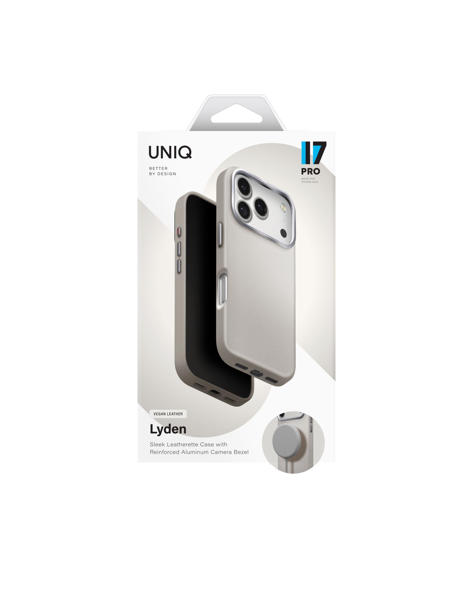 Lyden je prémiový ochranný kryt z veganské kůže, který kombinuje elegantní vzhled s každodenní ochranou. Nadčasový design doplňují hliníkové prvky kolem fotoaparátu a bočních tlačítek, zatímco měkká vnitřní mikrovláknová podšívka chrání telefon před poškrábáním při každém nasazení i sejmutí krytu.
