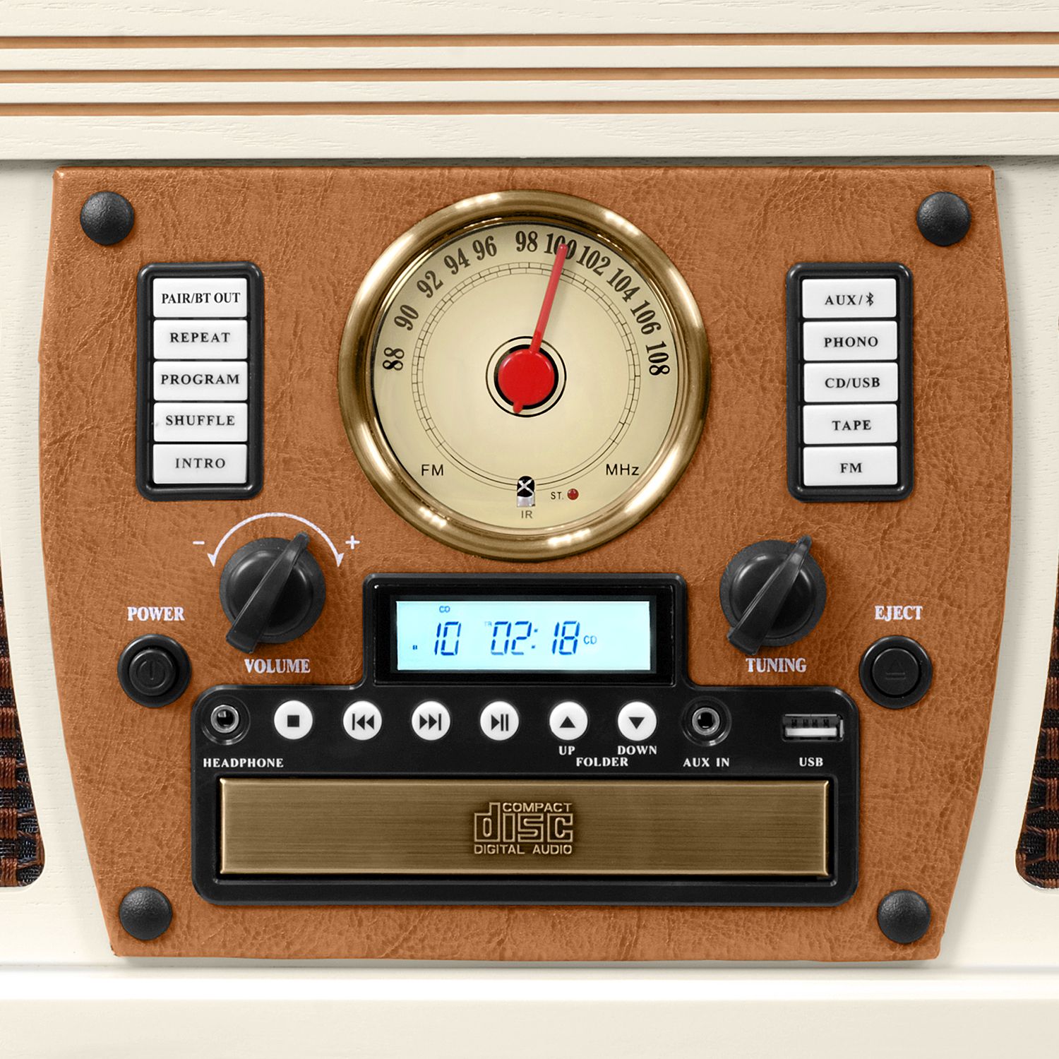 8 způsobů poslechu: přehrávač gramofonových desek, CD přehrávač, kazetový přehrávač, přehrávač AUX-In, FM Rádio, vstup Bluetooth, Bluetooth OUT (VinylStream), USB Flash disk.